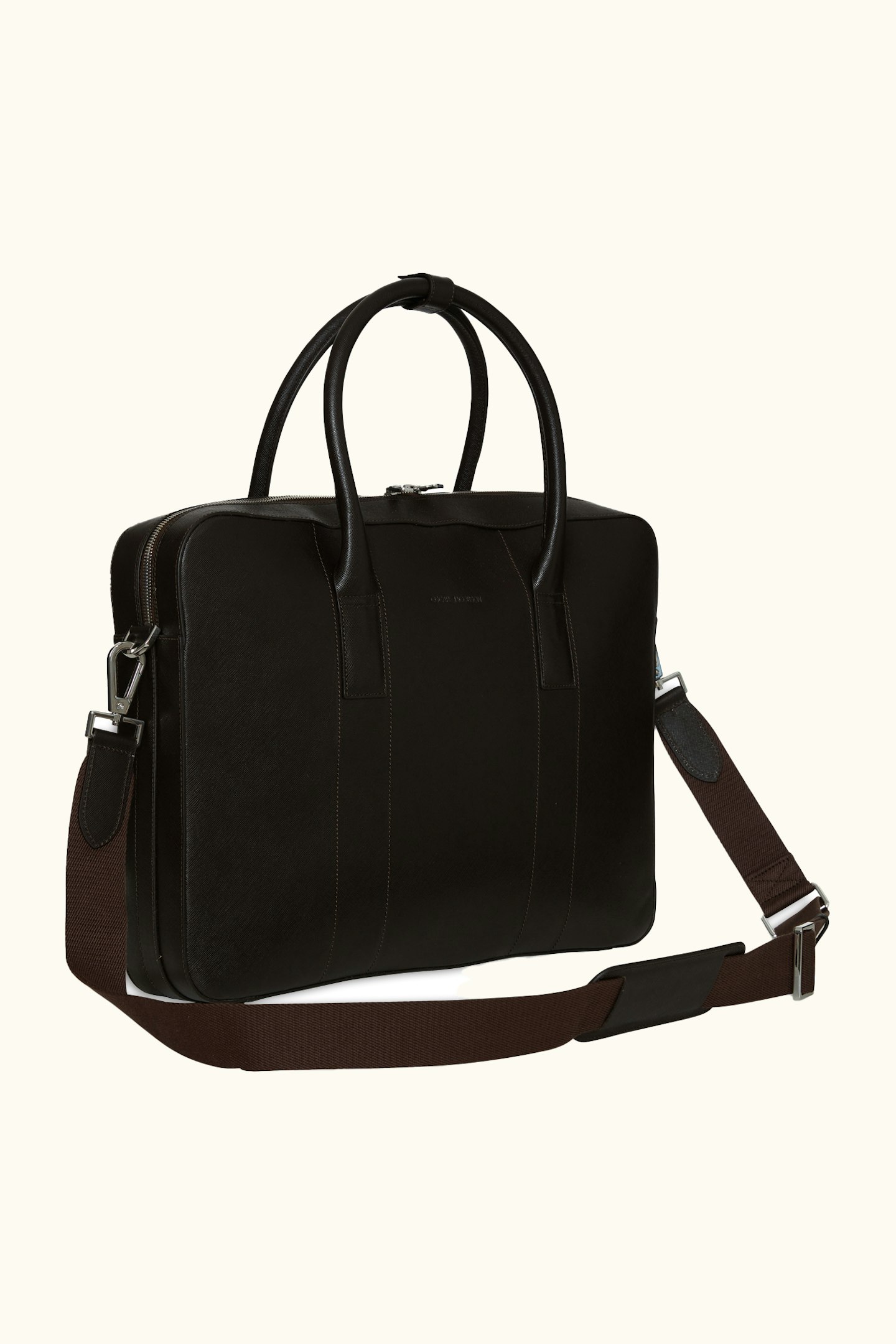 Håndlavet Briefcase i spansk Saffiano-læder, fremstillet i Almansa-regionen, hvor der er en lang tradition for læderarbejde. Tasken har fire indvendige rum, plads til vores laptop-etui og leveres med en tilhørende justerbar skulderrem. Tasken er designet til at rumme det, du har brug for på kontoret, uden at fylde for meget. Mål: 42x7x30 cm