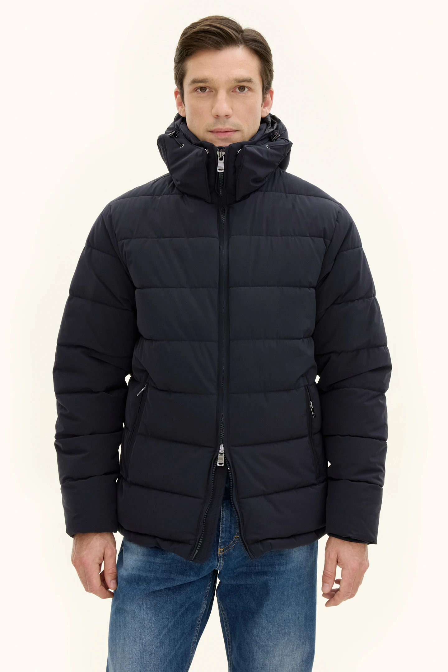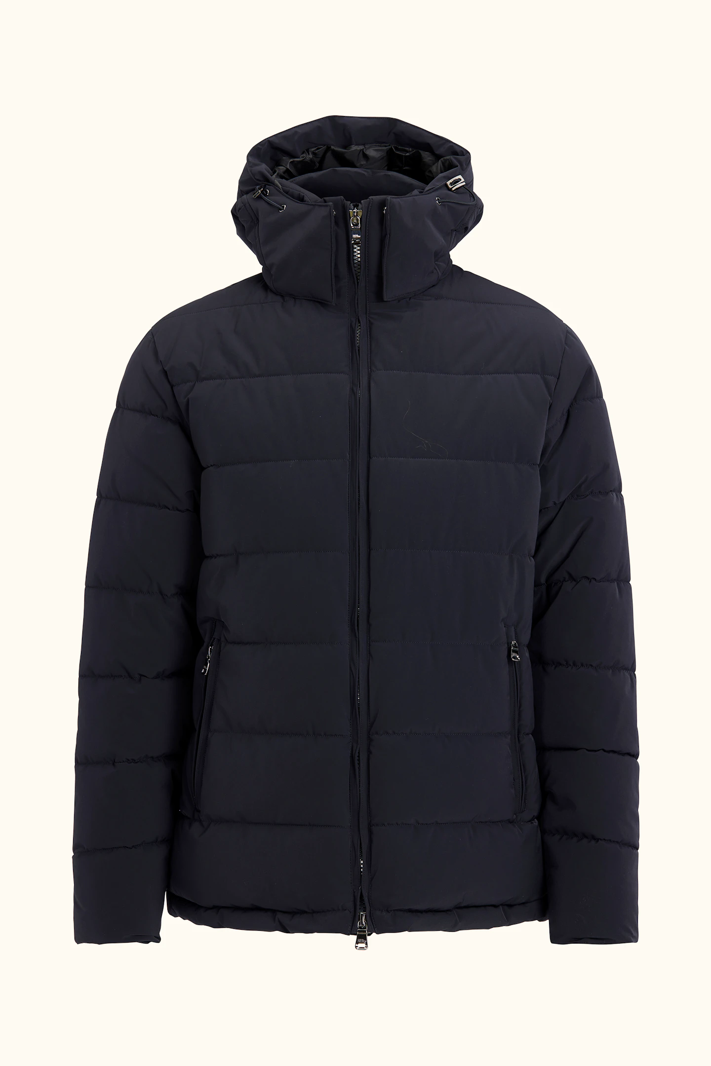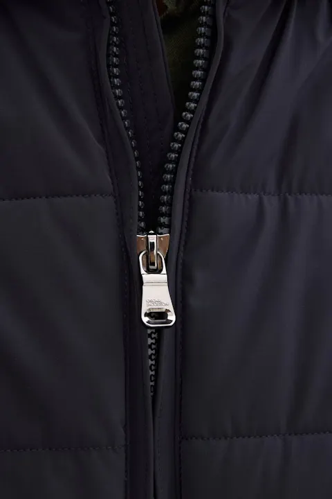 Vores Hooded Puffer Jacket med isoleringsmembran er designet som et varmt vejrbestandigt overtøj til hverdagsbrug om vinteren. Med sit stilfulde, klassiske design kan denne jakke nemt kombineres med både jeans og formelle flannelbukser. Den vandafvisende skal er foret med 450 g plantebaseret Sorona-polstring, der giver varme på de koldeste dage. Den høje knaplukning, sammen med den justerbare hætte og talje, giver dig mulighed for at forsegle jakken for ekstra beskyttelse. Indvendigt tilføjer et slidstærkt ripstop-for med tre lommer funktionalitet. Den aftagelige hætte tilbyder alsidighed, hvilket giver mulighed for flere stilmuligheder. Isoleringsmembranen, en to-lags isolerende skal, er konstrueret til at beskytte dig mod vind og vejr, samtidig med at mobilitet, åndbarhed og stil bevares.