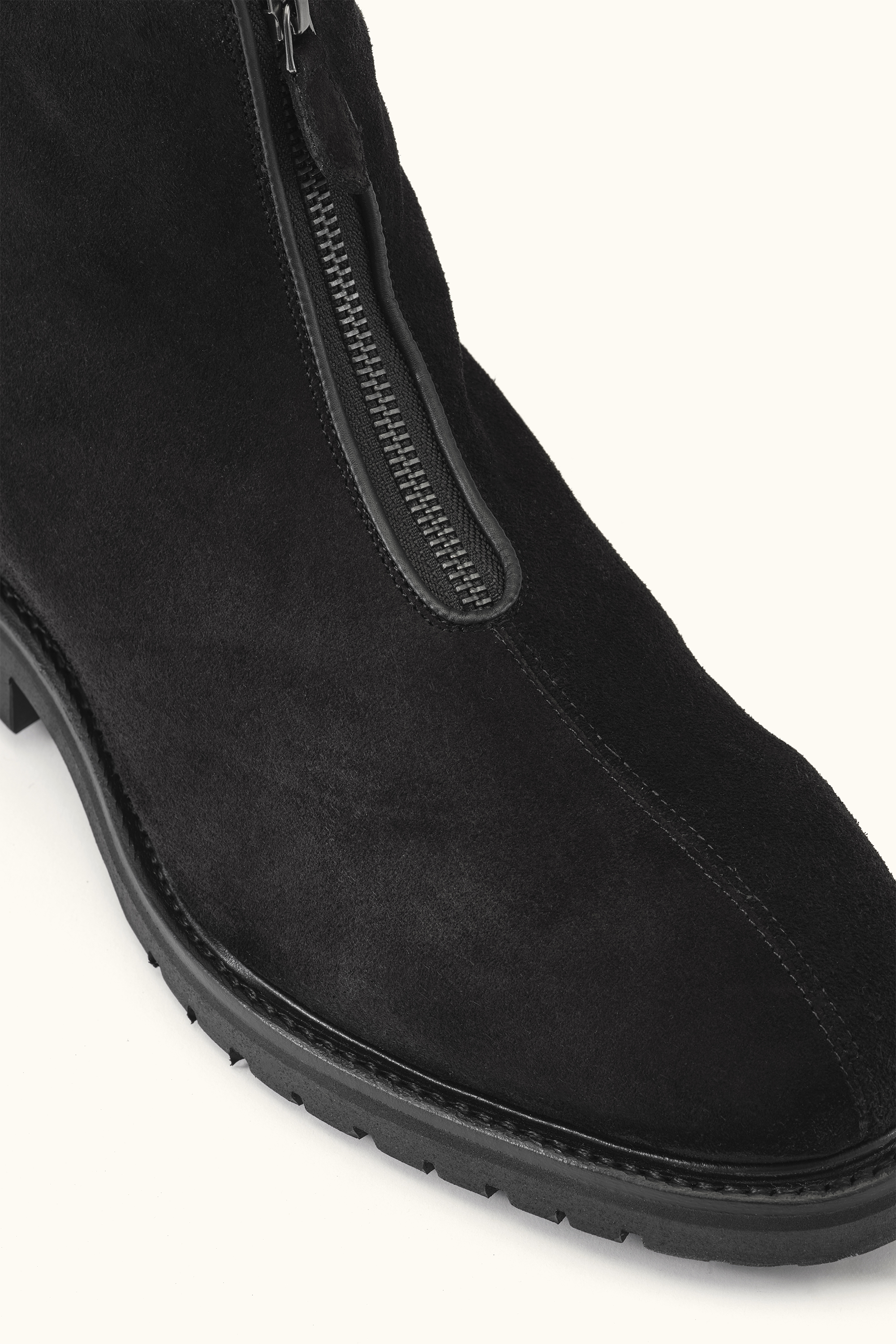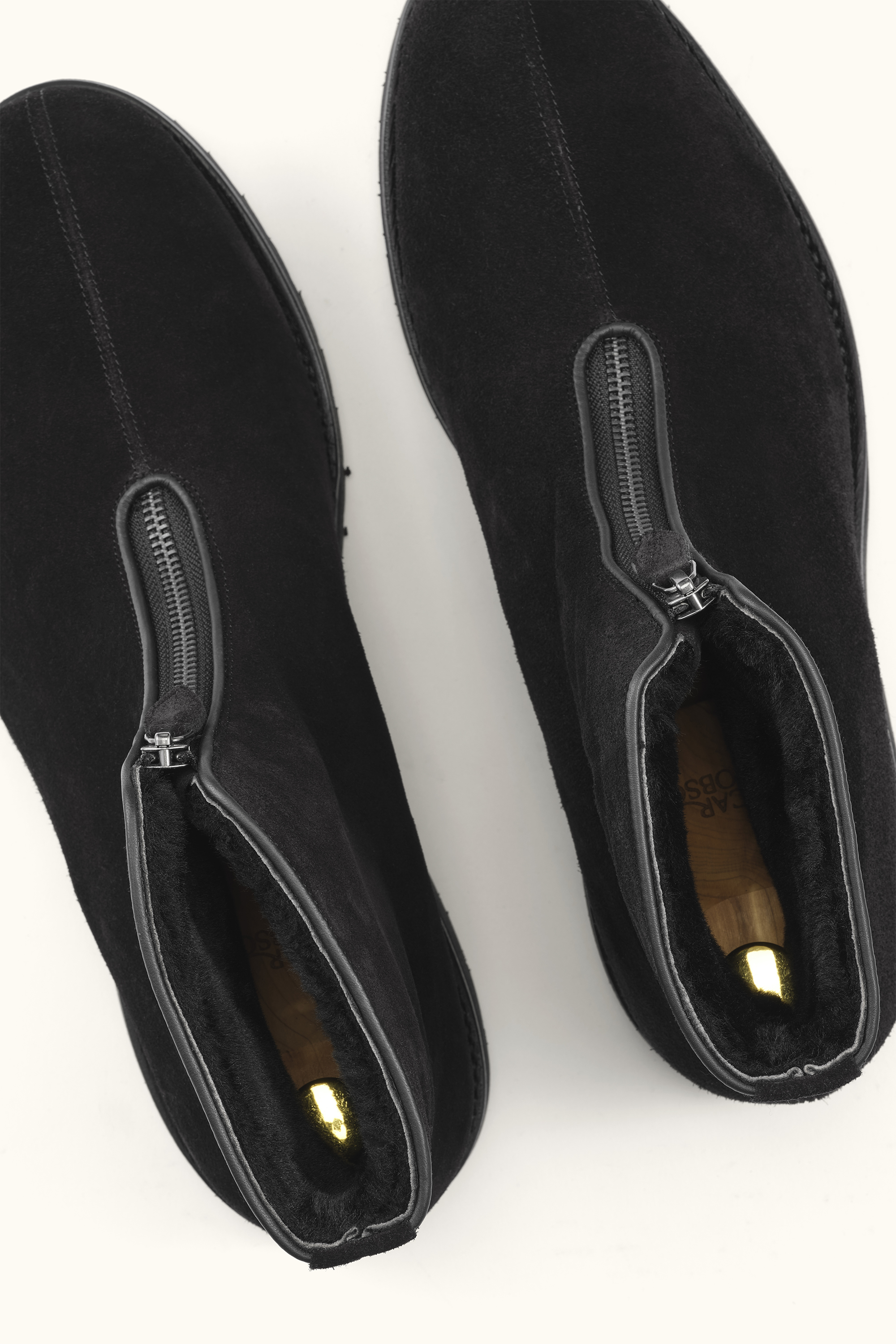 Goodyear-stitched Mountain Boots lavet af luksuriøst italiensk ruskind, der tilpasser sig formen på din fod. Disse støvler er håndlavede i Spanien og har en Commando gummisål for godt greb, holdbarhed og vandtæthed under udfordrende vejrforhold. Sålen er fastgjort med en Storm Welt rundt i kanten for bedre at beskytte konstruktionen mod fugt, og støvlerne er pelsforede for at holde dig varm i vinterkulden. Den bløde memory foam indersål giver stødabsorbering, der former sig efter din fod. Konstruktionen giver mulighed for fremtidig sålskift, og med vores nye læderbindende sål er støvlerne endnu mere holdbare, hvilket sikrer, at de kan modstå flere såler til langtidsbrug.