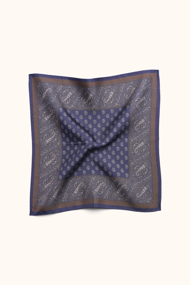 Lommetørklæde fremstillet af 100 % silke. Det er designet med et tidløst mønster og vævet konstruktion. En raffineret klassiker for en elegant stil.