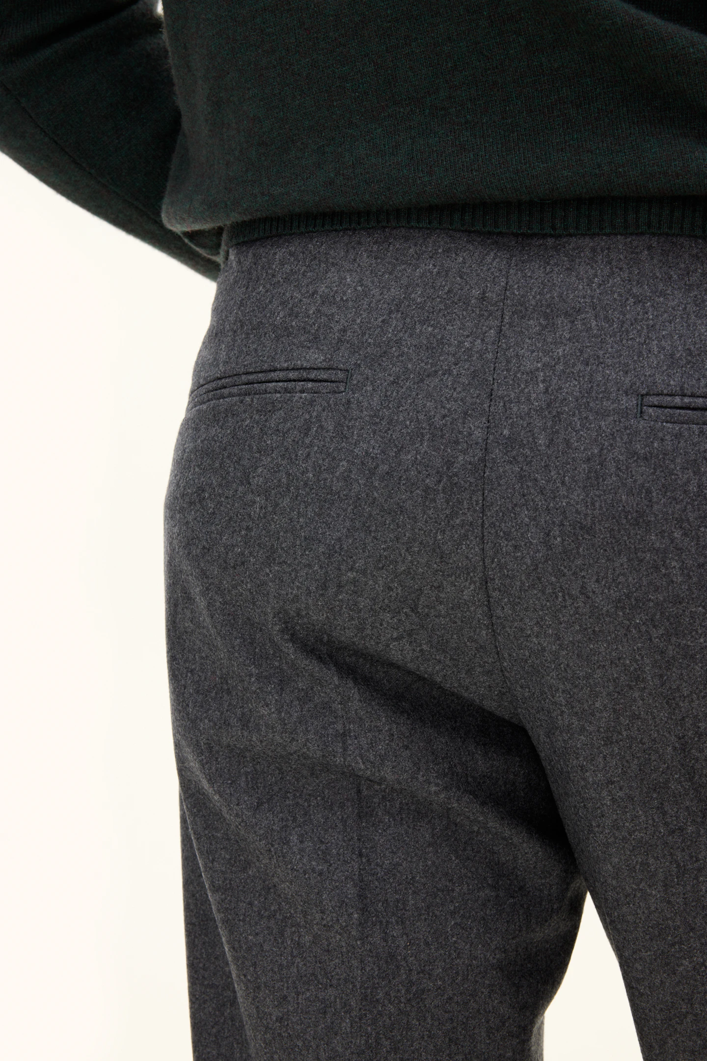 1. TALJE Læg bukserne på en flad overflade med forsiden opad, og mål fra kant til kant. Gang med 2. 2. FODVIDDE Mål fra kant til kant ved bukseafslutningen. Gang med 2. 3. INDVENDIG BENLÆNGDE Mål indersiden af buksebenet fra skridtet til bukseafslutningen