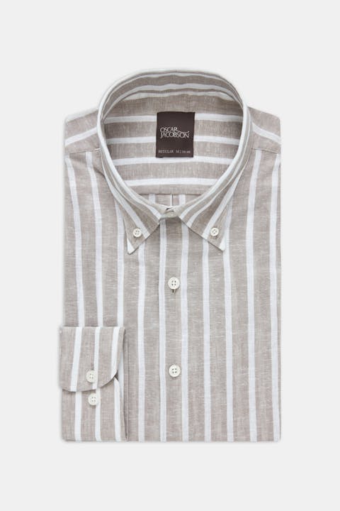 Vores sommerstribede skjorte er perfekt til varme dage. Den regular pasform og button down gør den til et alsidigt stykke tøj. Materiale: Bomuld & hør blanding