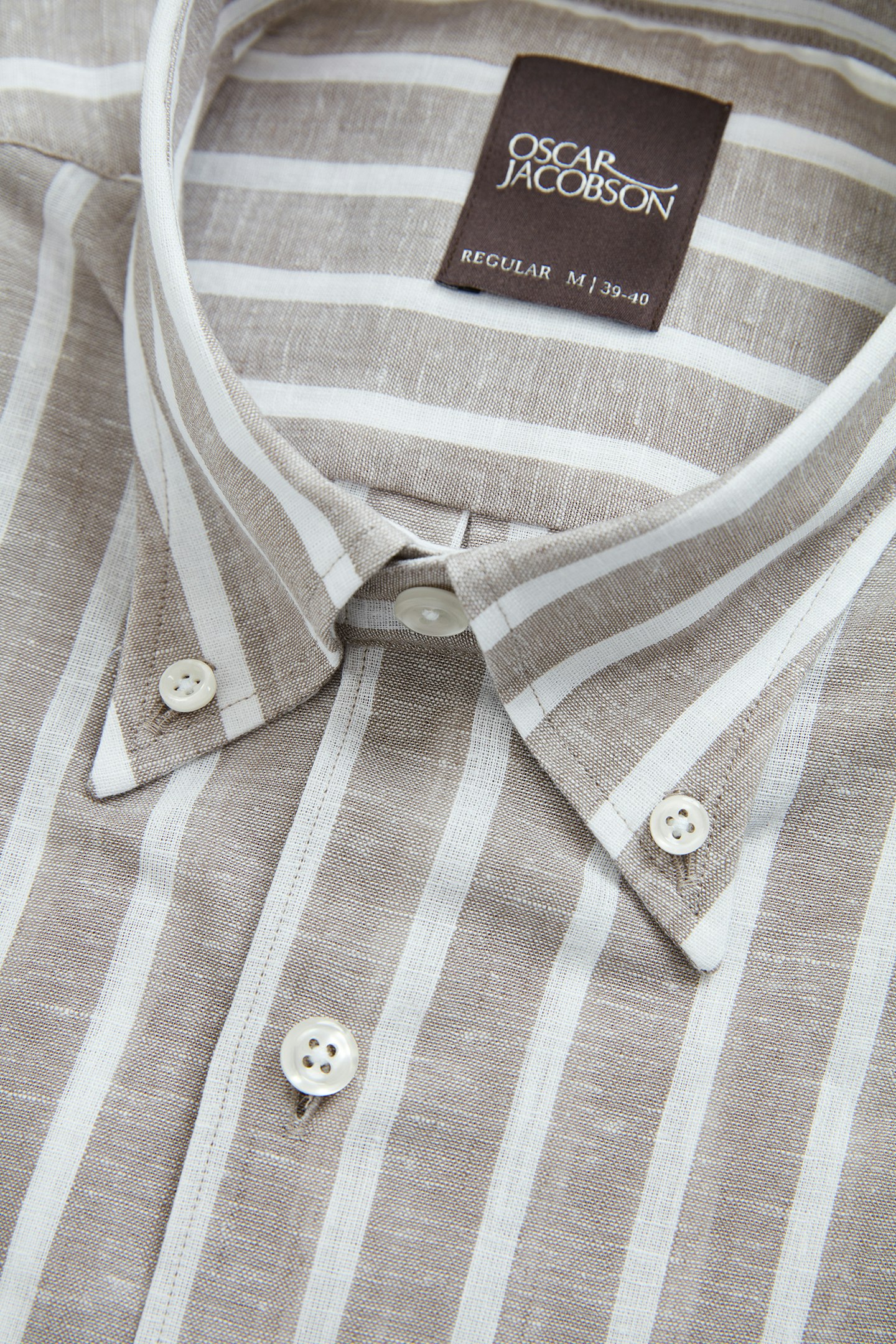 Vores sommerstribede skjorte er perfekt til varme dage. Den regular pasform og button down gør den til et alsidigt stykke tøj. Materiale: Bomuld & hør blanding