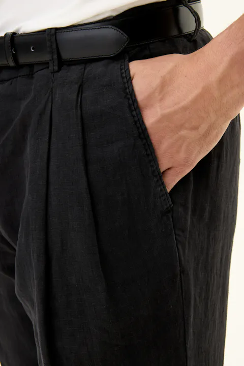 Disse bukser har et regular fit. De er designet med et tidløst ensfarvet mønster og fremstillet med vævet konstruktion. Lavet af 100 % hør.
