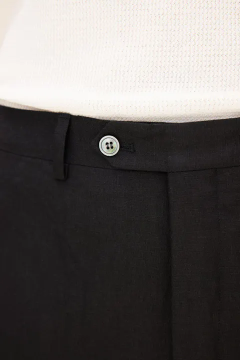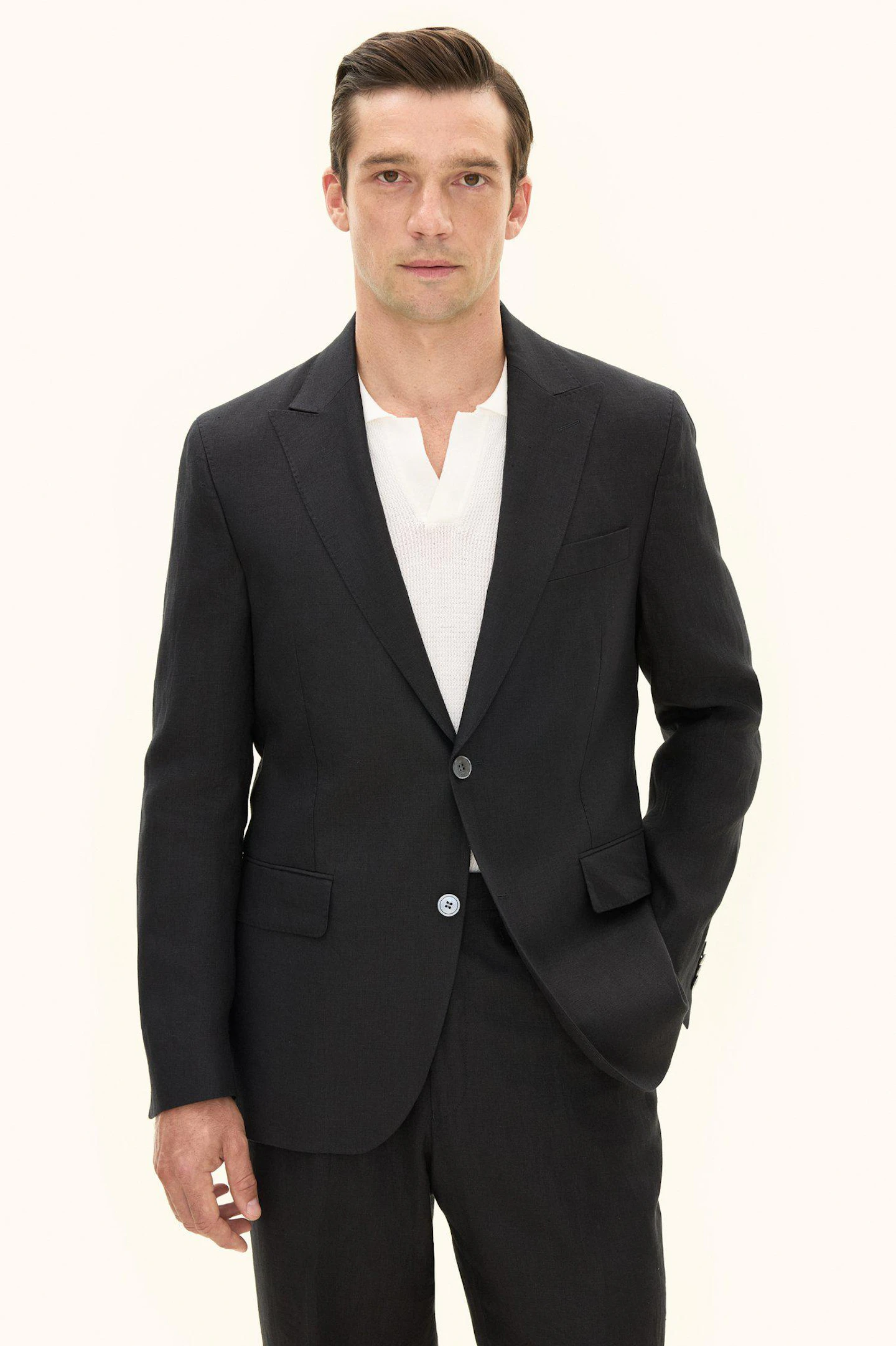 Et jakkesæt i 100 % hør i regular fit med blødt konstruerede skuldre. Jakken er enkeltradet, har lommer med klap og en halvforet inderside for øget ventilation, hvilket giver en naturlig og komfortabel silhuet. Bukserne er i regular fit med høj talje. En moderne klassiker, der balancerer stil og komfort.