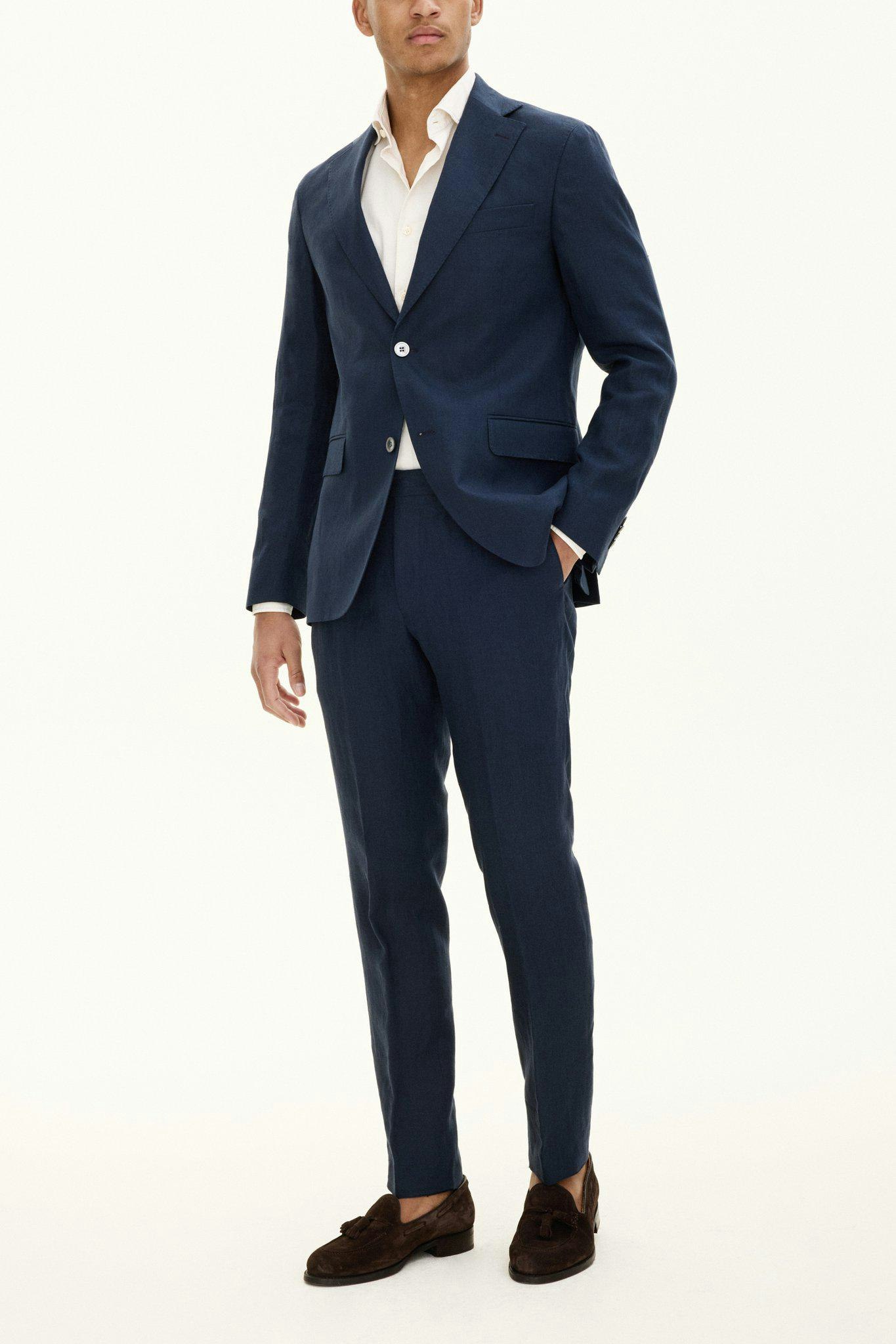 Lavet i 100% uld med en diskret mikrostruktur fra væveren Angelico, denne jakkesætsæt er et fremragende valg til både arbejde og fest. Modellen er helforet og har et blødt konstrueret bryst- og skulderområde. Pasformen er smal, uden at være stram, hvilket giver en moderne skræddersyet silhuet.