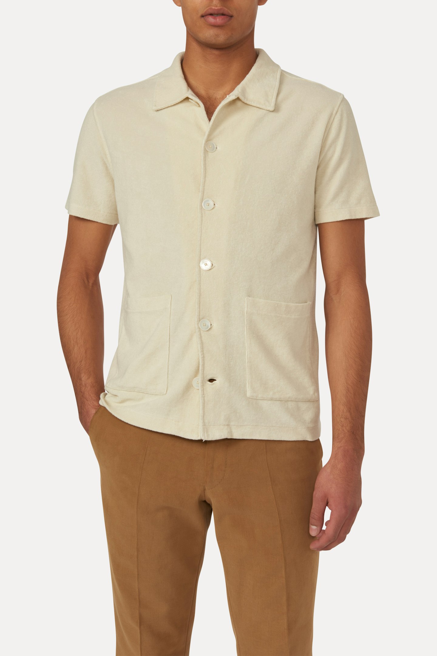 Kortærmet skjorte i bomuldsstretch. Bomuldsblanding der føles som et blødt og luksuriøst frottéhåndklæde. Dobbelte lommer foran.