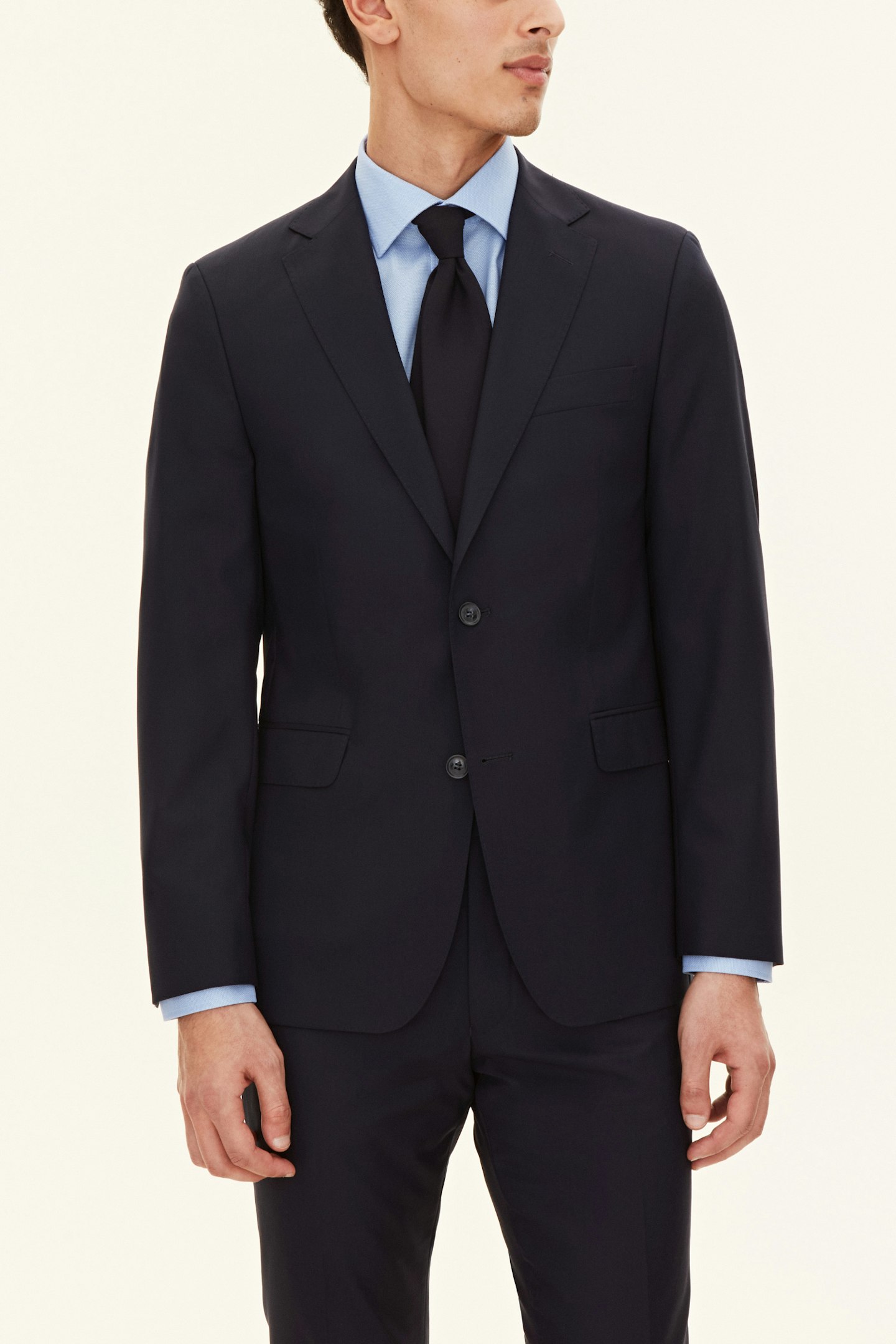 Klassisk helforet jakke i normal pasform med blød struktureret skulder. Her i en glat uldstretch.