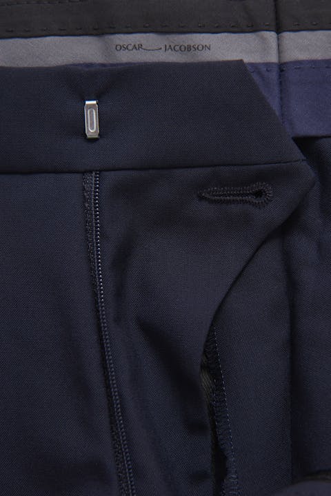 Klassiske jakkesætsbukser i super 100 uld fra det italienske Marzotto væveri. Modellen har en klassisk let tilspidset pasform og normal høj talje. Kan matches med følgende blazere for et komplet jakkesæt: Fogerty