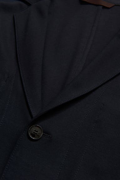 "Den nye generations blazer". Uforet og ukonstrueret skjortejakke i blazer-stil. Udvendige lommer og dobbelte inderlommer. Her i en teknisk stretchjersey.