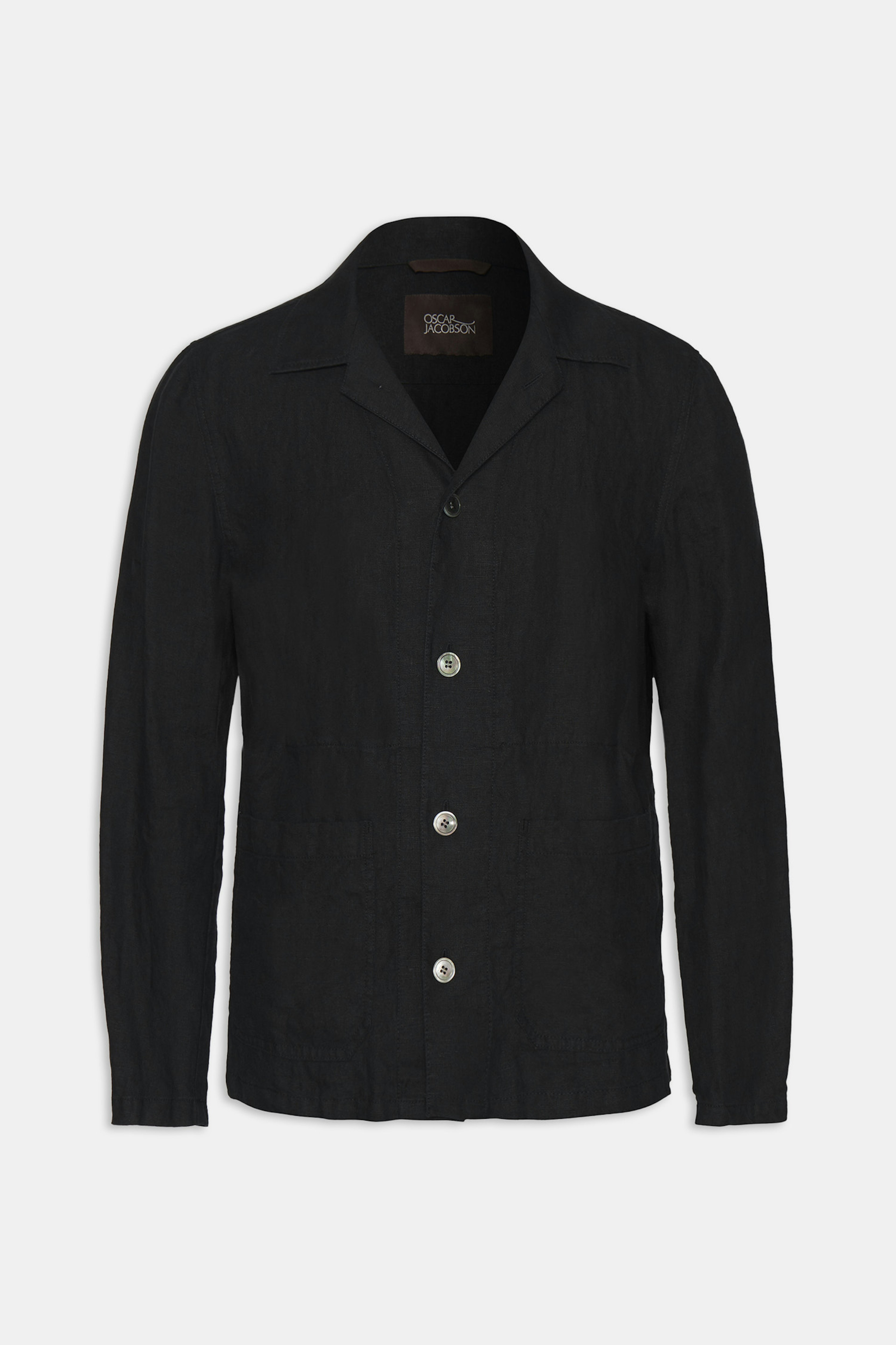 Vores nu klassiske skjortejakke i ren hør. Designet i en lige pasform med dobbelte taljelommer og dobbelte inderlommer. Lukkes med ægte perlemorsknapper.