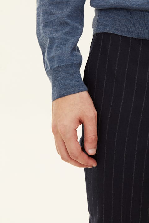 Elegant polostrik i ekstra fin merinould fra Tollegno, Italien. Den høje kvalitet af de lange uldfibre giver trøjen en luksuriøs og let blank overflade. Polokraven er strikket med dobbelt garn for ekstra stabilitet. Strikken er tyndstrikket i 14gg, hvilket gør den perfekt at have under en blazer for et sofistikeret og stilrent look.