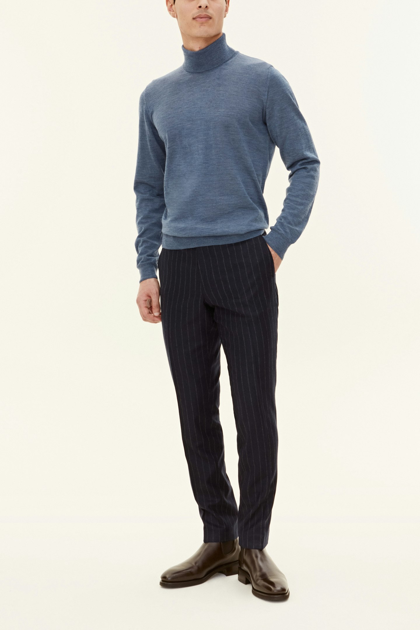 Elegant polostrik i ekstra fin merinould fra Tollegno, Italien. Den høje kvalitet af de lange uldfibre giver trøjen en luksuriøs og let blank overflade. Polokraven er strikket med dobbelt garn for ekstra stabilitet. Strikken er tyndstrikket i 14gg, hvilket gør den perfekt at have under en blazer for et sofistikeret og stilrent look.