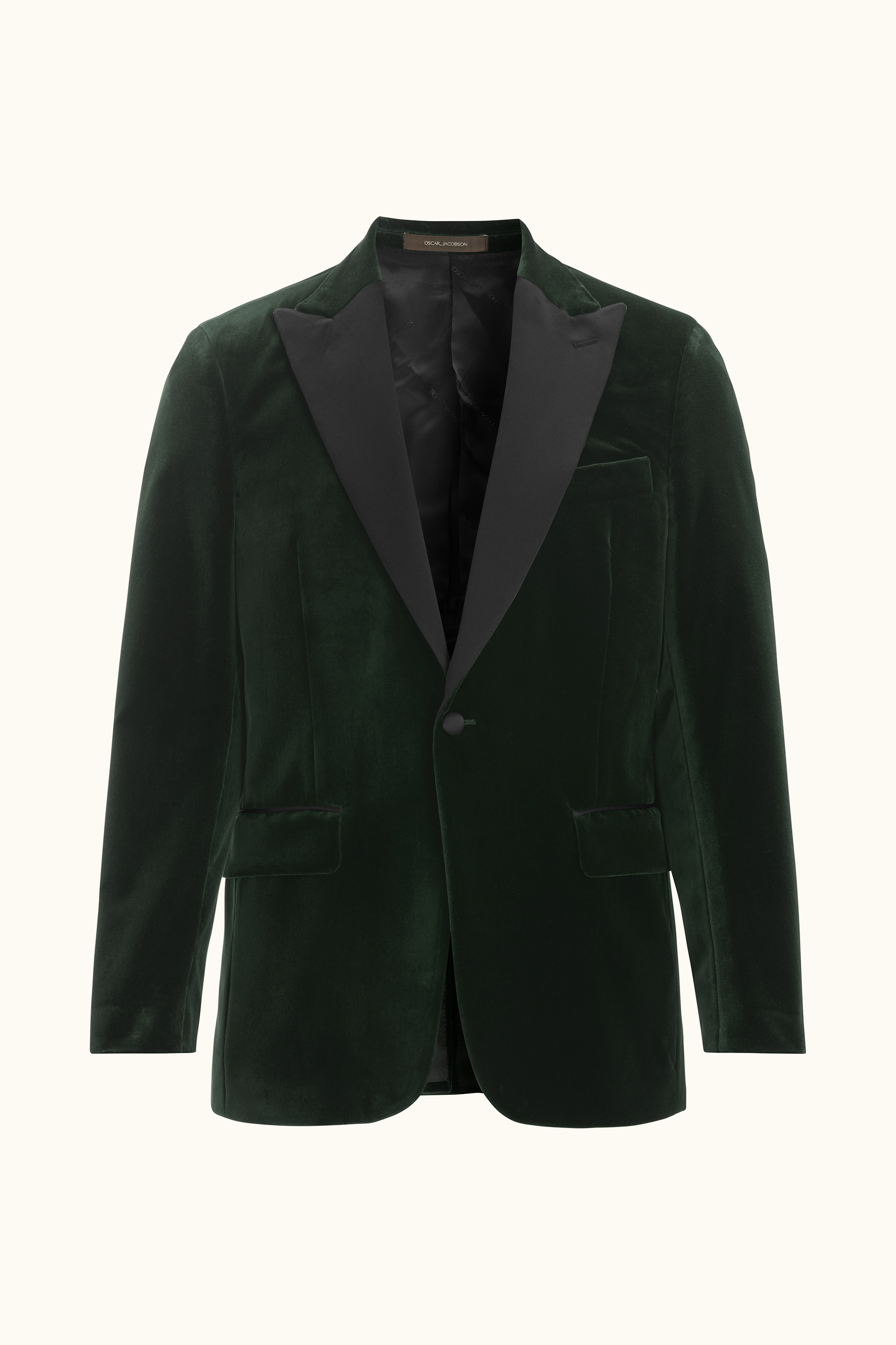 Smokingjakke i fløjl med spidse silkerevers. Fremstillet i bomuld fra væverne i Pontoglio. Normal pasform, der giver en moderne silhuet uden at føles stram. Fuldt indvendigt for i viskose for en ekstra komfortabel følelse.