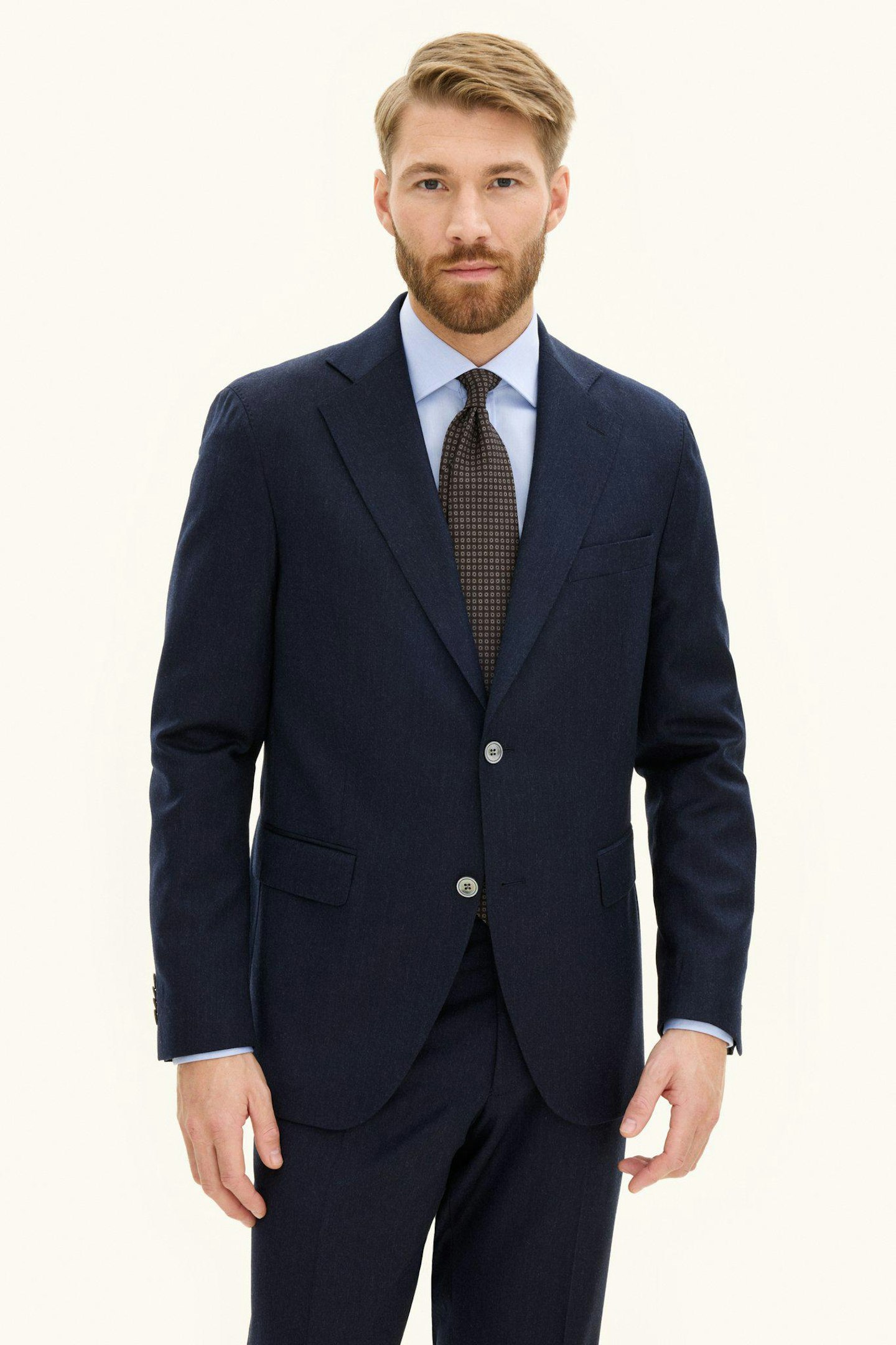 Denne alsidige og gennemtænkte enkeltradede jakkesæt i en blød uldblanding kombinerer raffineret skrædderi med praktisk elegance.