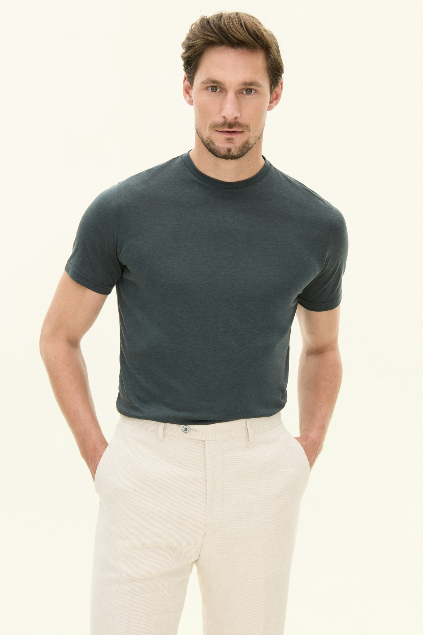 En blød og behagelig t-shirt lavet i bomuld-tencel. Stoffet har en let glas, der giver et elegant og stilrent udtryk. Den er perfekt at bruge under en jakke og ved mere uformelle sammenkomster.