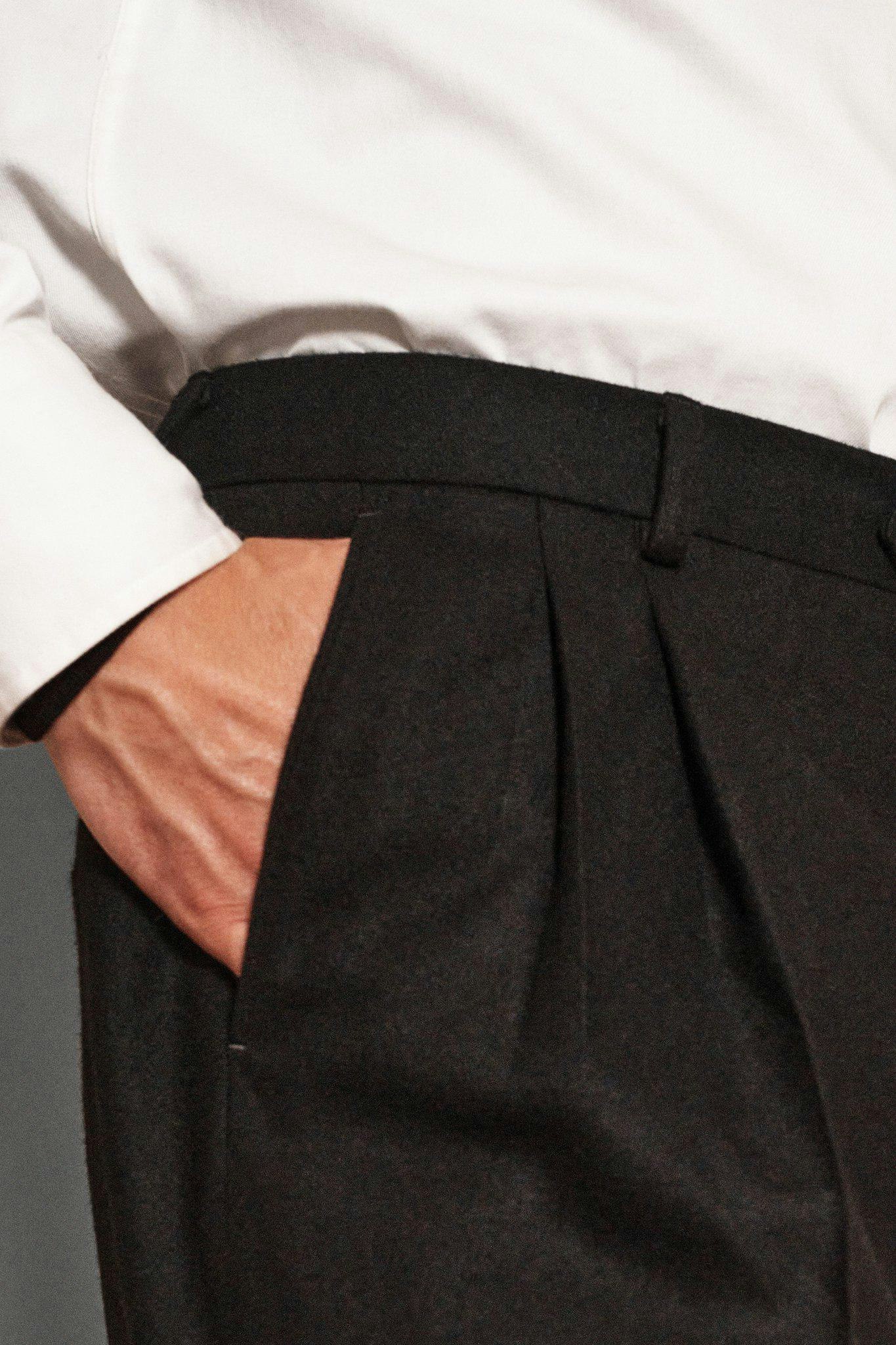 Regular Fit Højtajlet Pleated Flannel Bukser