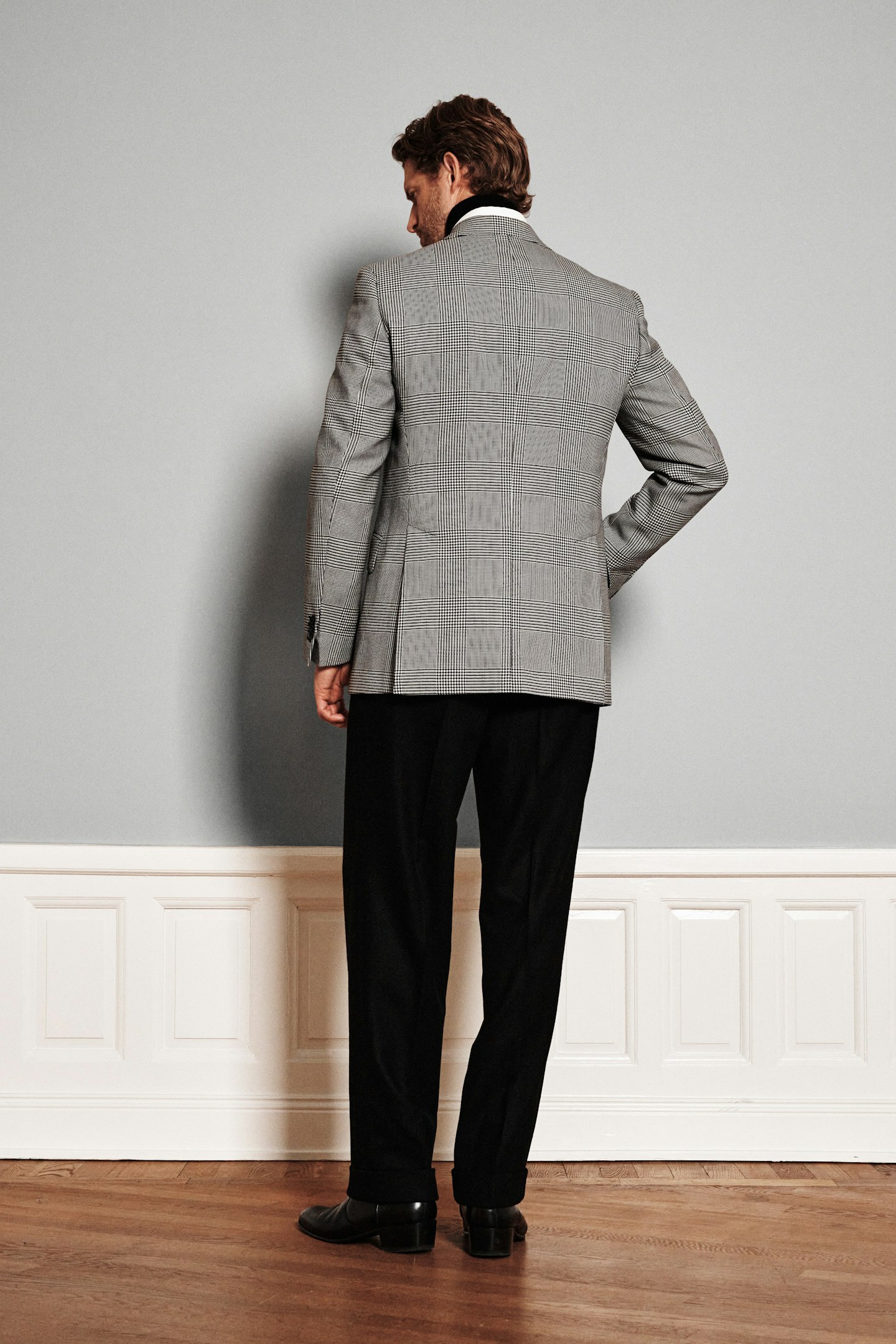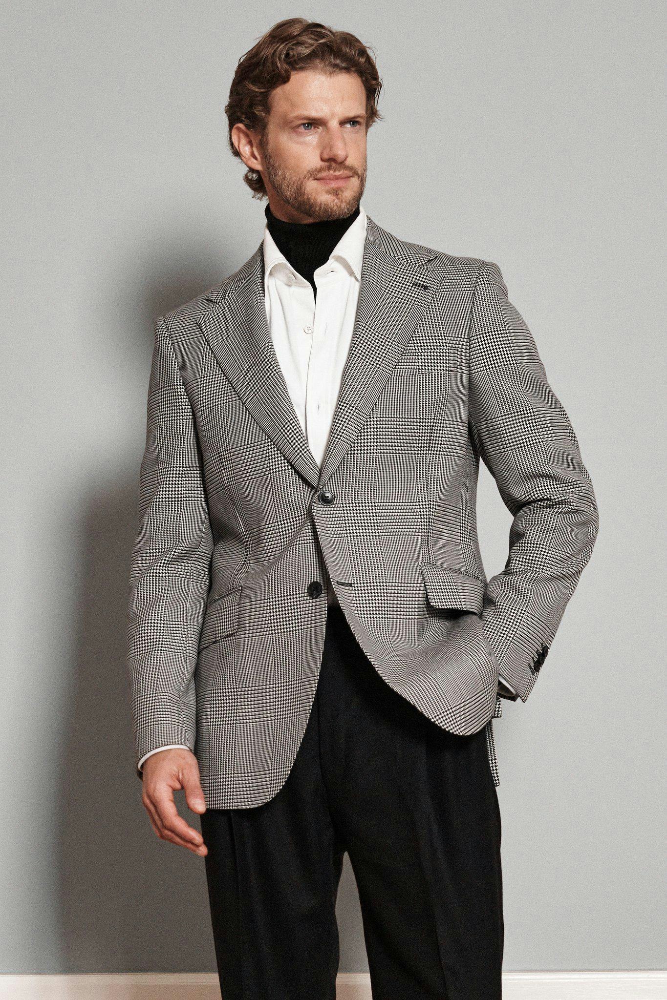 Dette produkt er en del af Oscar Jacobsons Legacy-kollektion, som er forankret i klassisk herremode og vores solide historie. Vi er blevet inspireret af modeller fra vores omfangsrige arkiv og har lavet moderne versioner af ældre modeller, hvor vi kombinerer moderne metervarer og tekniske løsninger med et historisk udtryk. Enkeltradet jakkesæt lavet af en kraftigere uldkvalitet med et tydeligt og markant glen-tern fra det historiske Guabello-væveri. Silhuetten er tidløs og er inspireret af vores historiske arkiv, mens det karakteristiske mønster giver en moderne og selvsikker karakter. Bukser lavet af kraftig flannelkvalitet fra det britiske væveri Dugdale Bros. Pasformen med dobbelte læg foran, vide ben og en højere talje er inspireret af klassiske buksemodeller fra vores arkiv, men er redesignet med moderne proportioner og præcise detaljer for en opdateret silhuet. Et beklædningsgenstand, hvor klassisk skrædderi møder udtryksfuldt design.