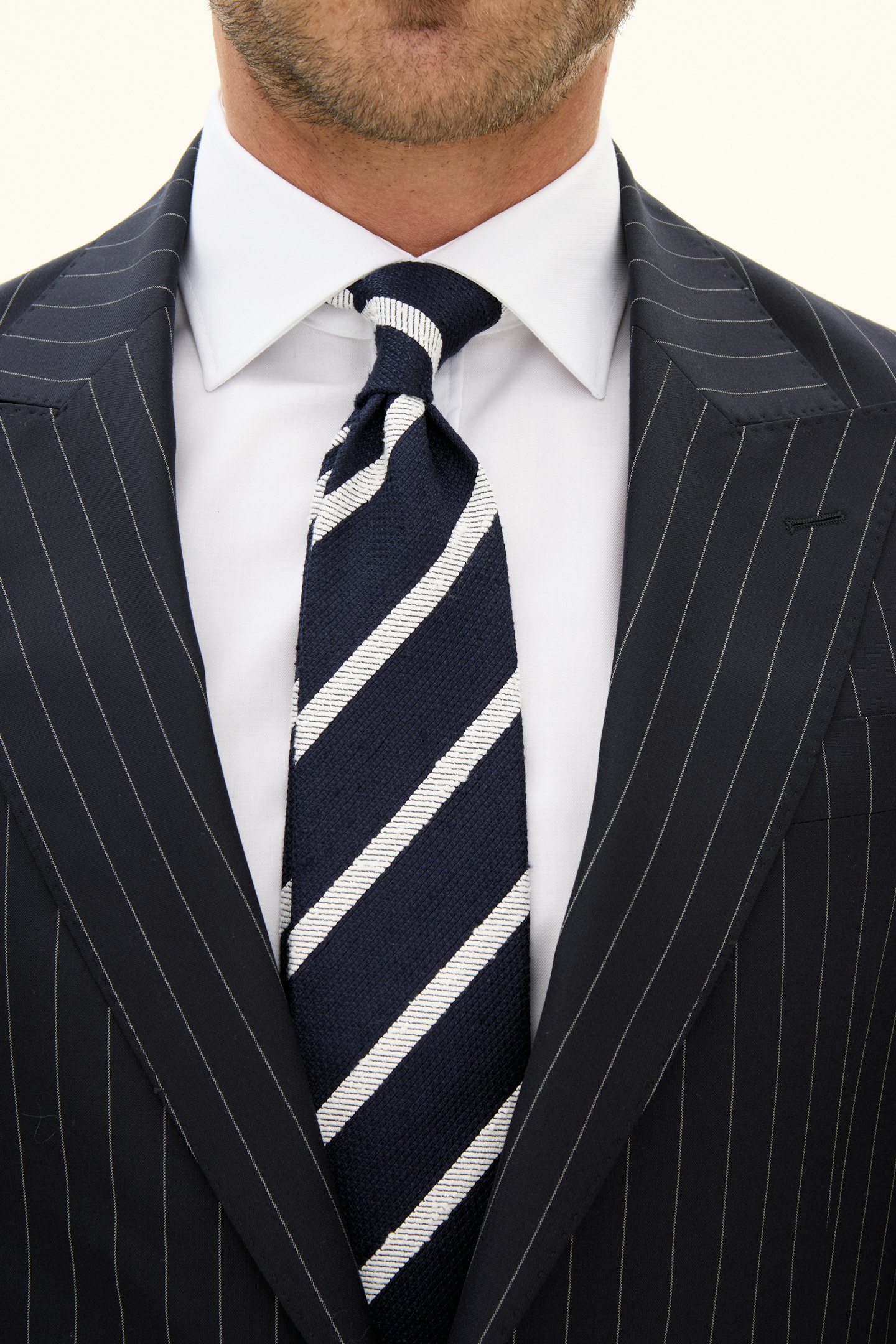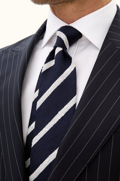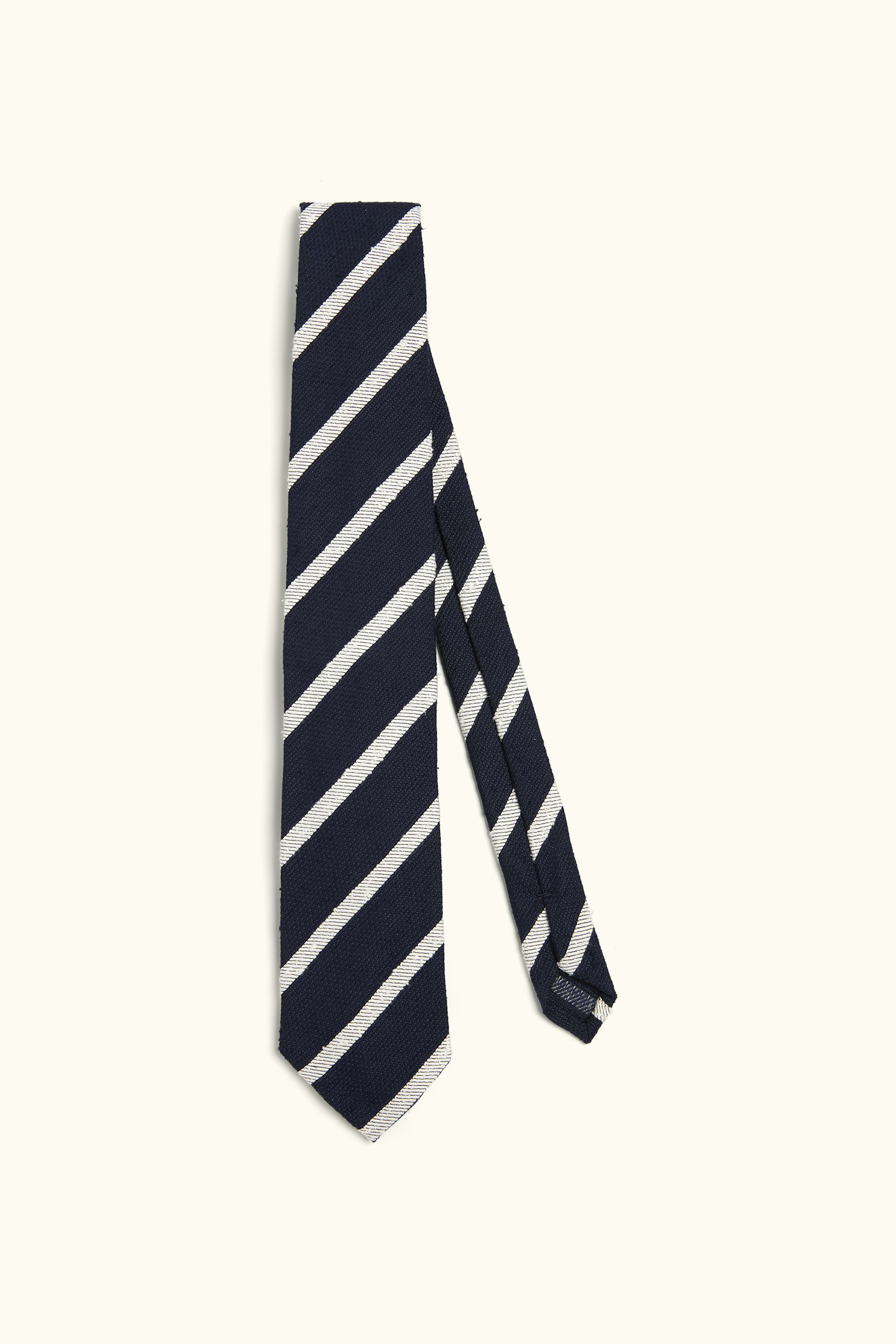 Slips fremstillet af 100 % silke. Den er designet med et tidløst stribet mønster og vævet konstruktion.