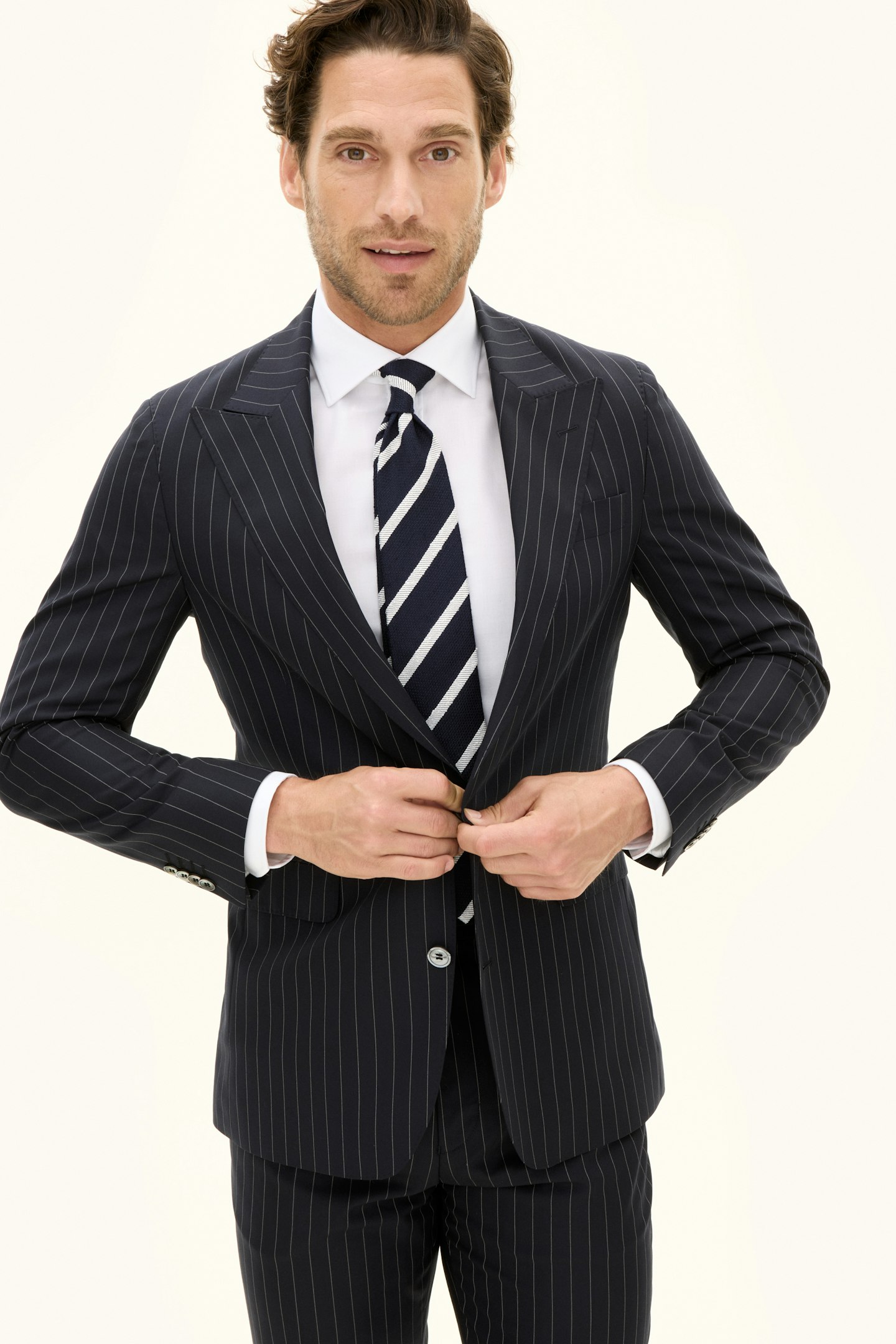 Slips fremstillet af 100 % silke. Den er designet med et tidløst stribet mønster og vævet konstruktion.