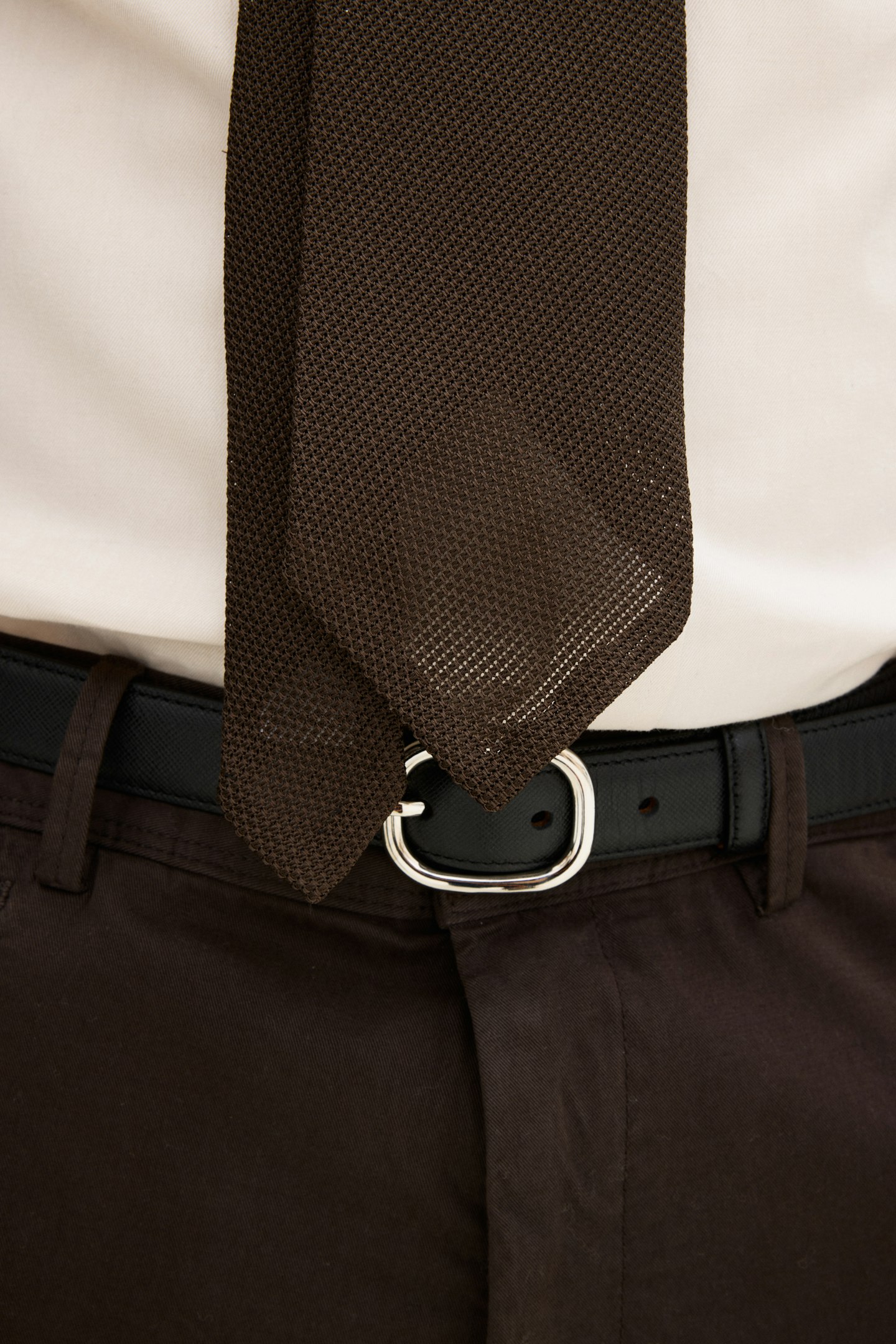 Slips fremstillet af 100 % silke. Den er designet med et tidløst stribet mønster og vævet konstruktion.