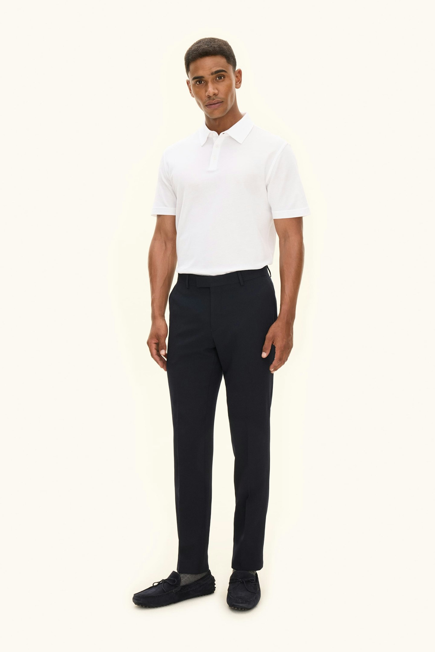Vores slim fit bukser Damien er perfekte til et slankt og stilfuldt look. Lavet af en blanding af uld og polyester, er disse bukser både behagelige og holdbare. Materiale: Polyesterblanding