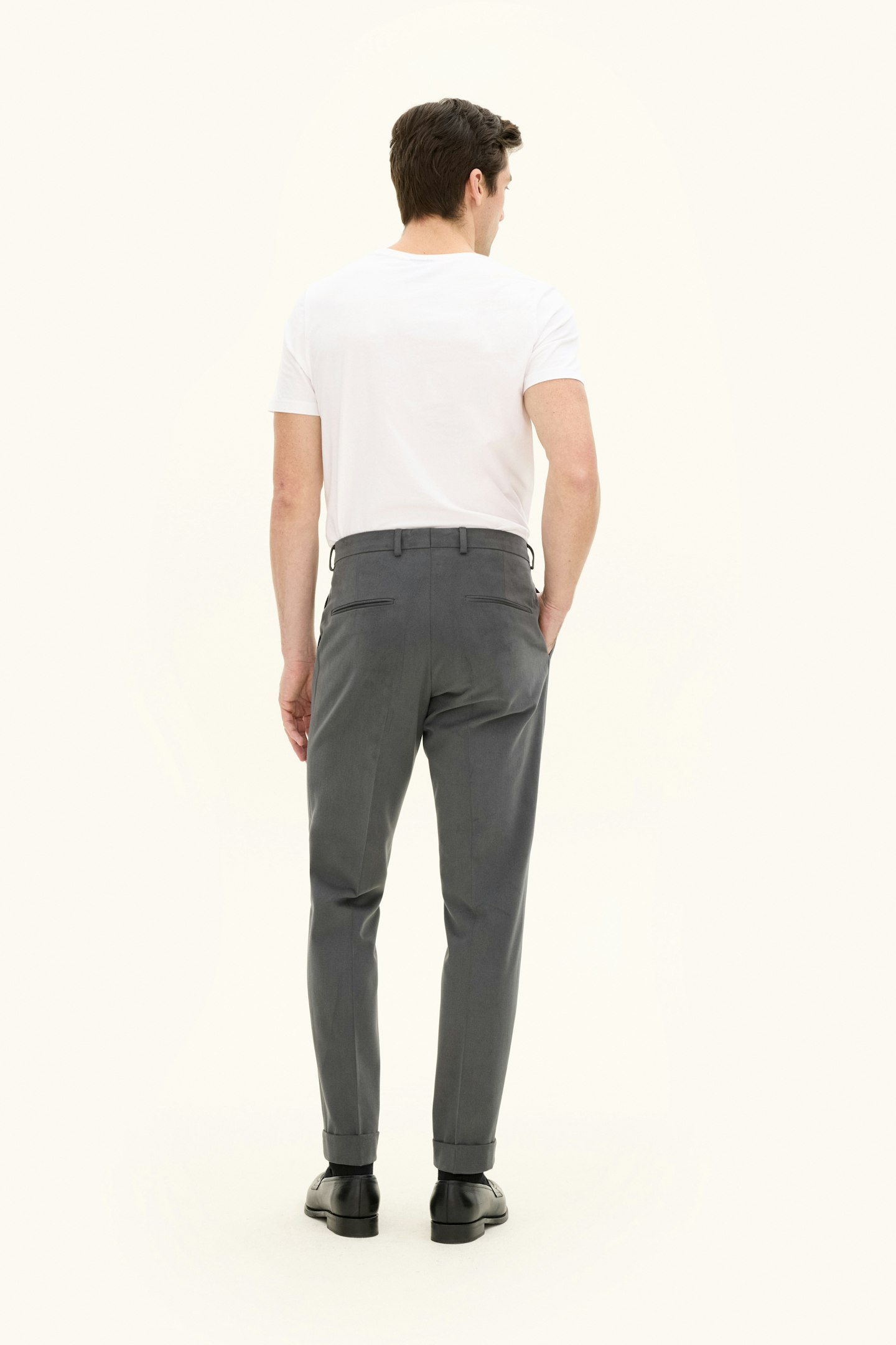 Fine bukser med smal pasform, opslag og normal høj talje. Semi-formel kvalitet i bomuldstwill.