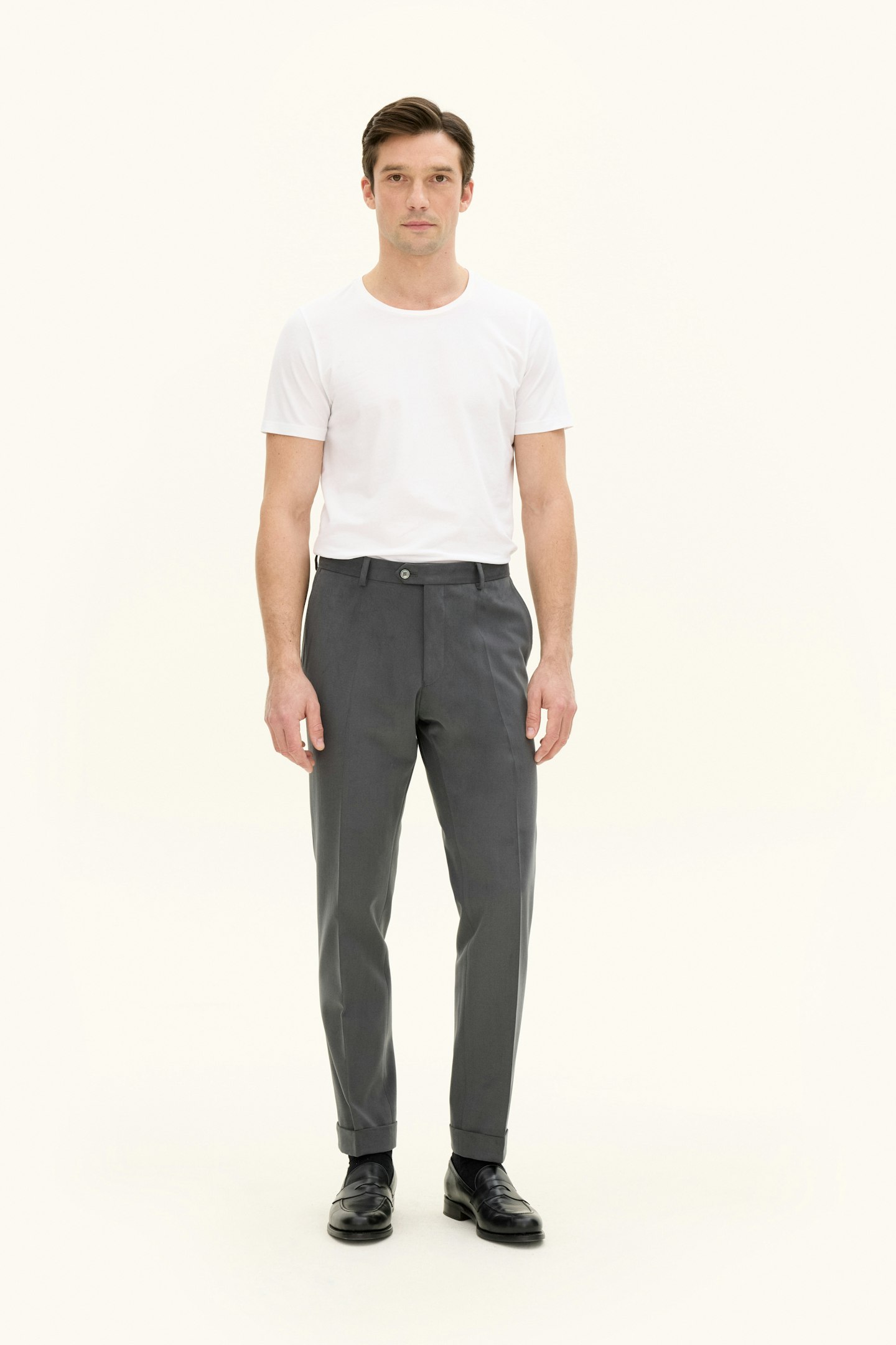 Fine bukser med smal pasform, opslag og normal høj talje. Semi-formel kvalitet i bomuldstwill.