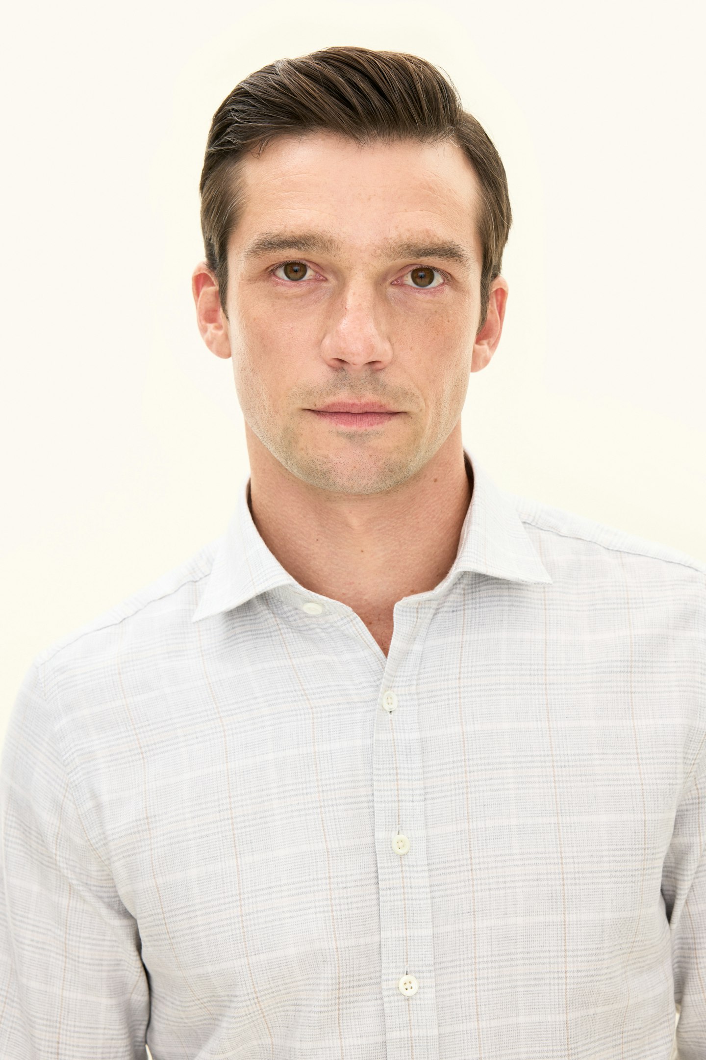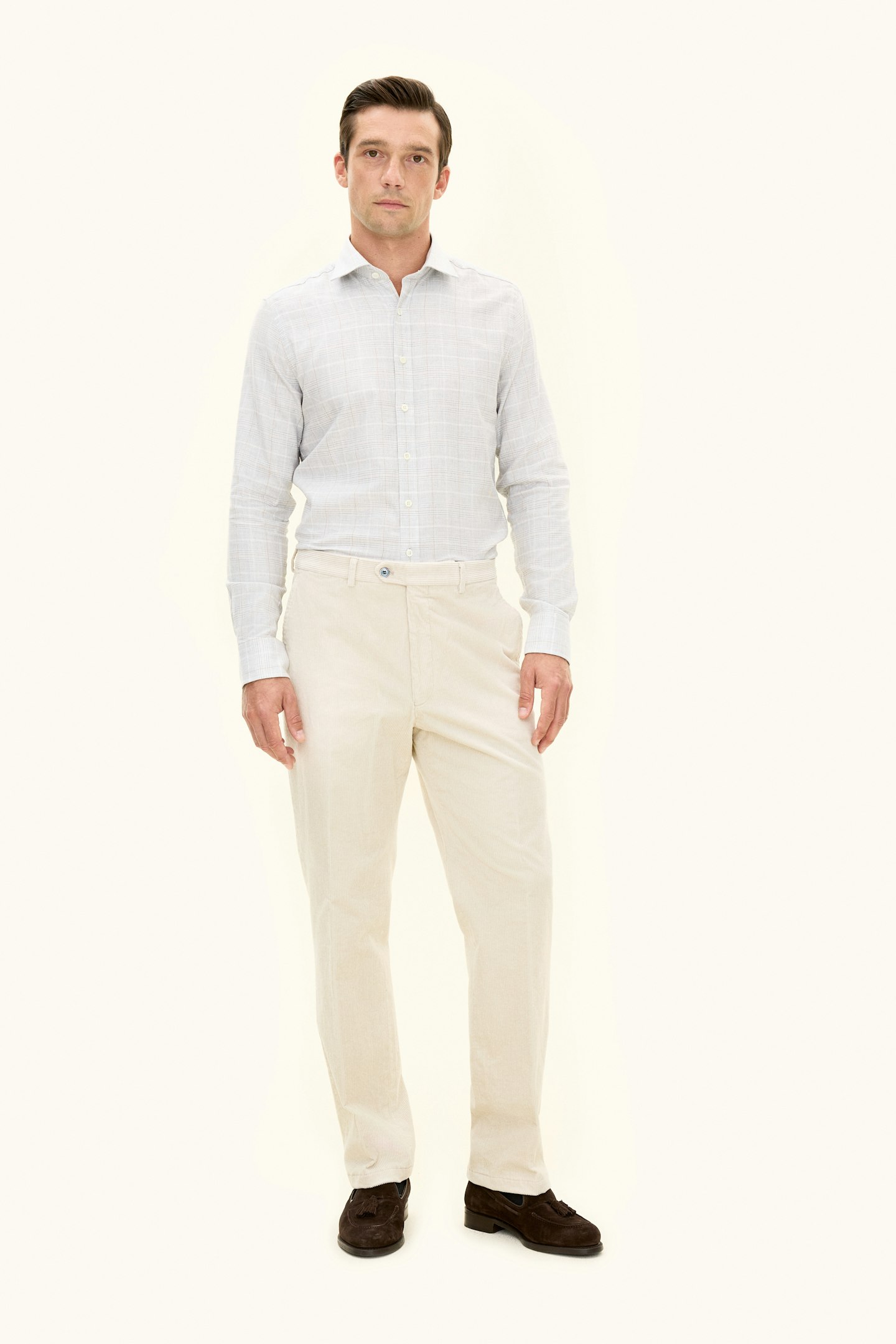Skjorte i børstet bomuldsflanell med en slank silhuet, cut away-krave og enkelt manchet. Et naturligt valg til den velovervejede garderobe.