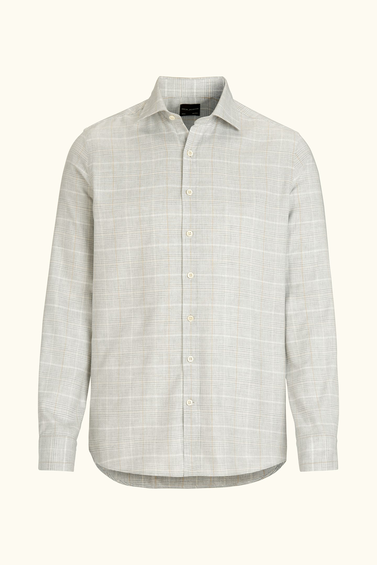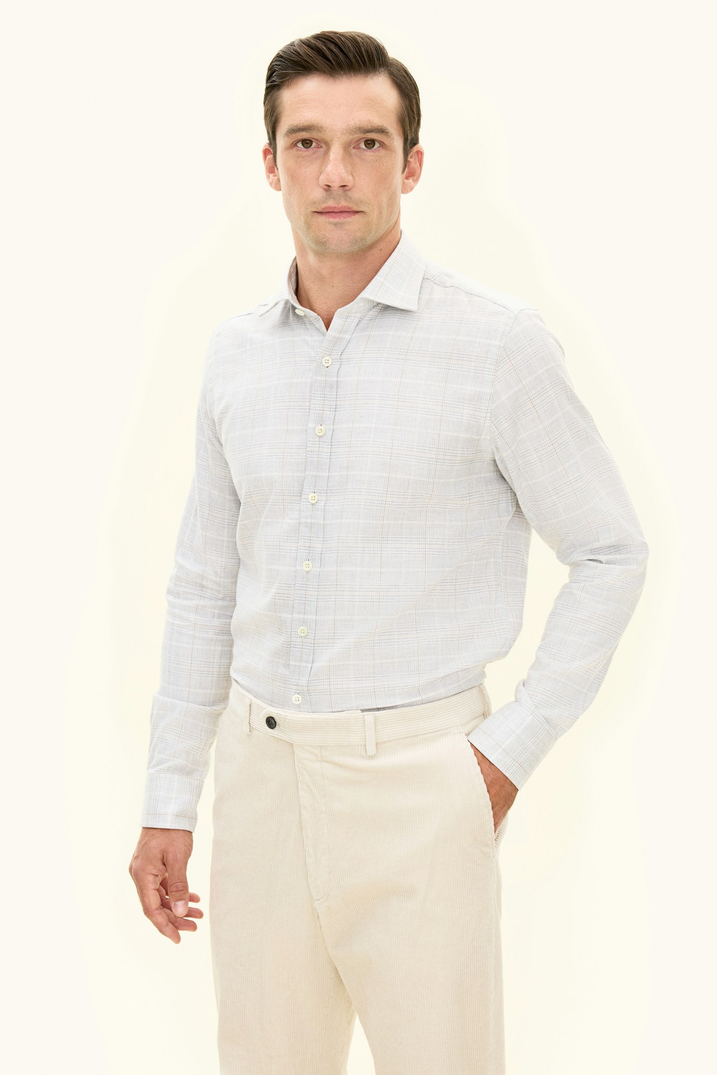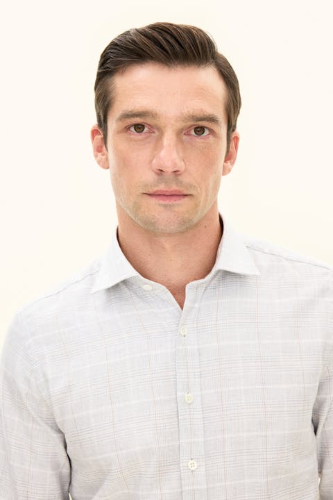 Skjorte i børstet bomuldsflanell med en slank silhuet, cut away-krave og enkelt manchet. Et naturligt valg til den velovervejede garderobe.