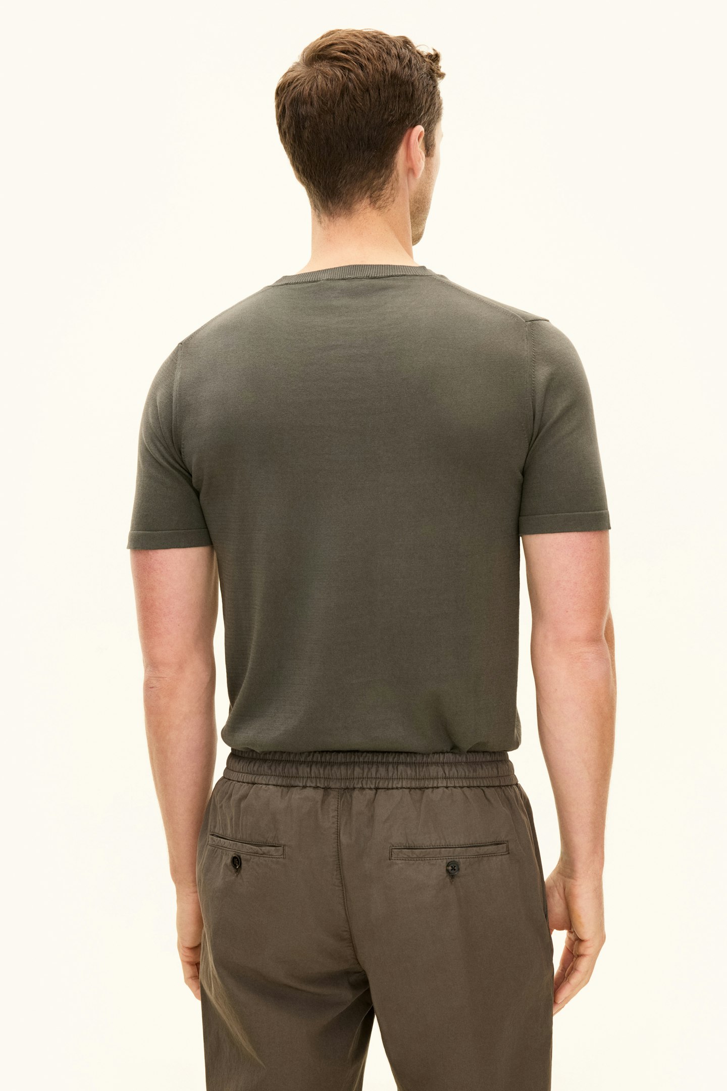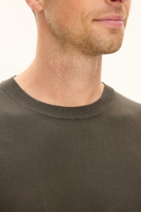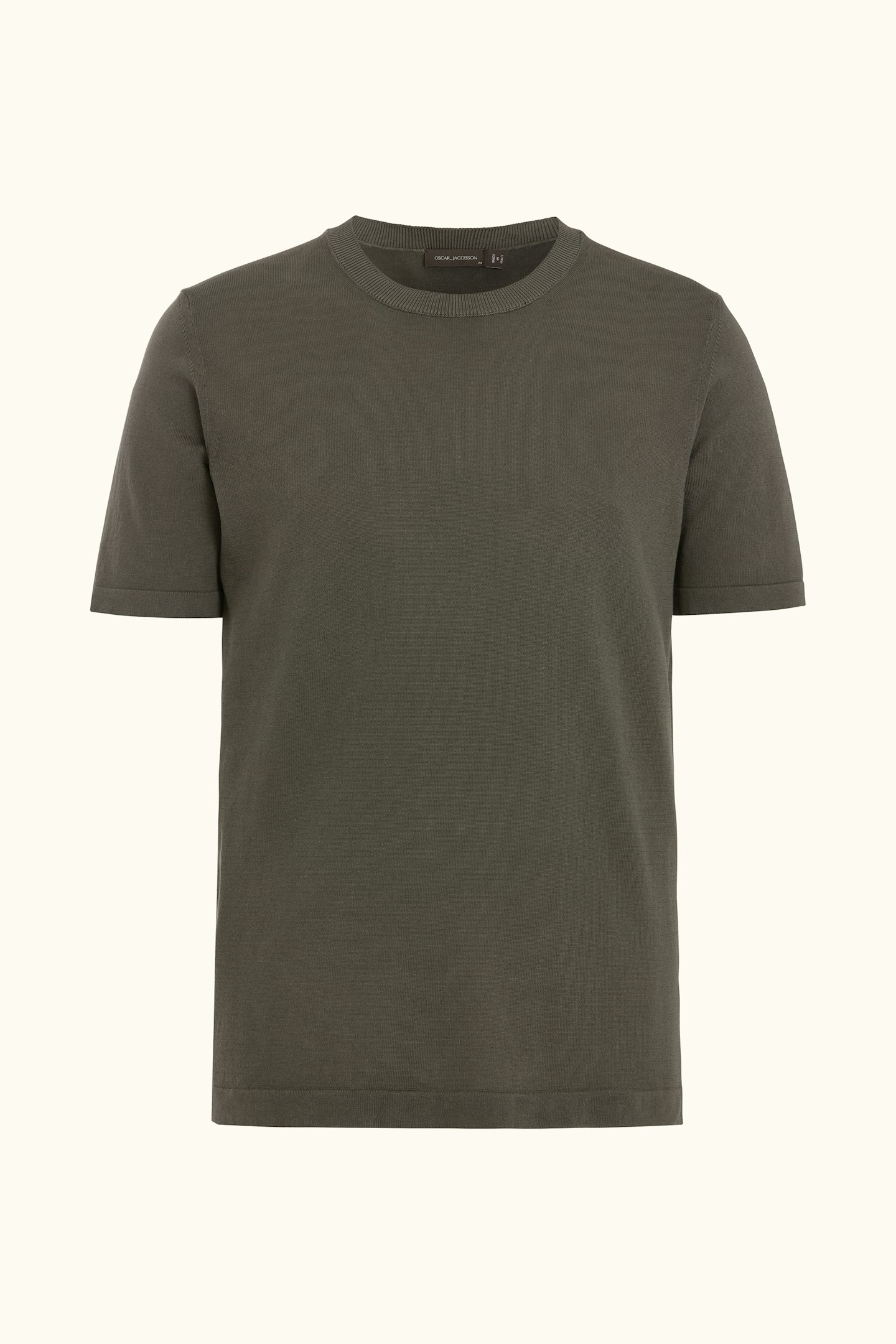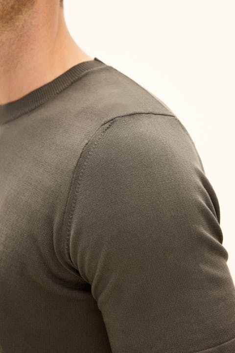 Vores Brian rundhals T-shirt er en slim fit lavet af 100% bomuld. Den har en rundhals design og har et ensfarvet strikket mønster.