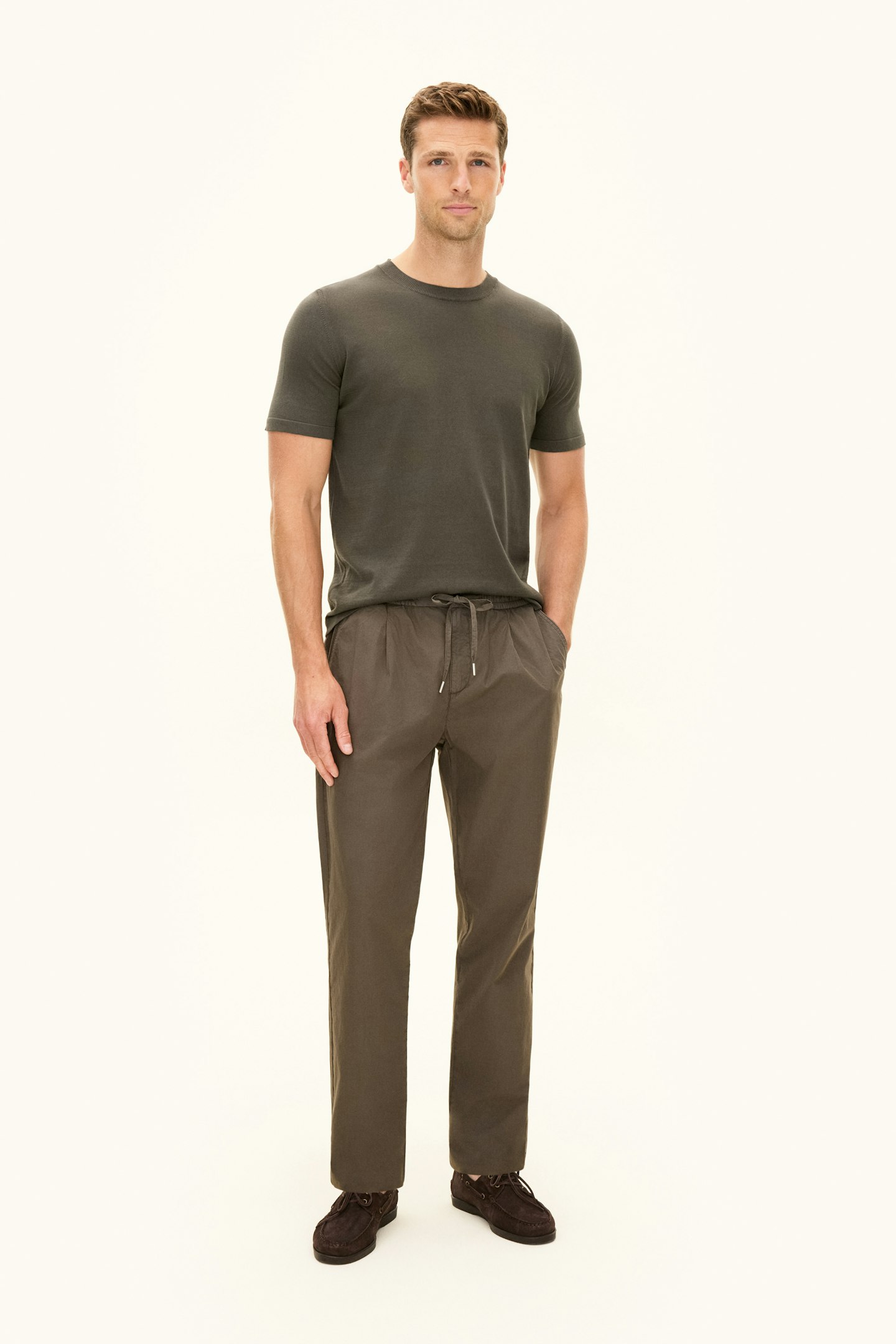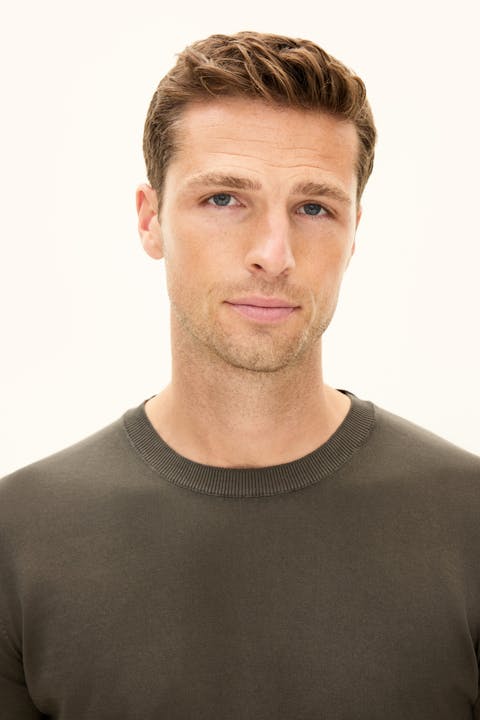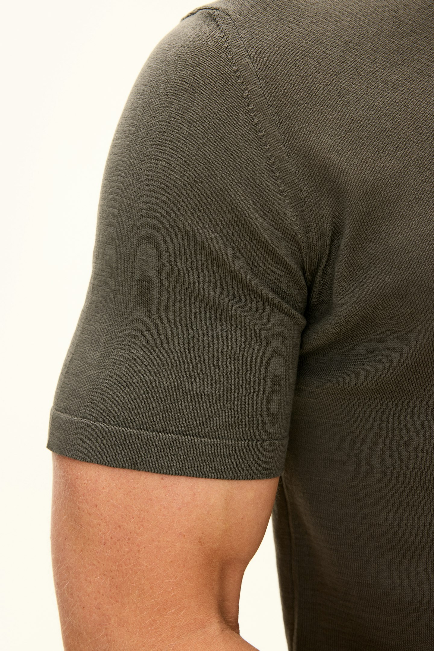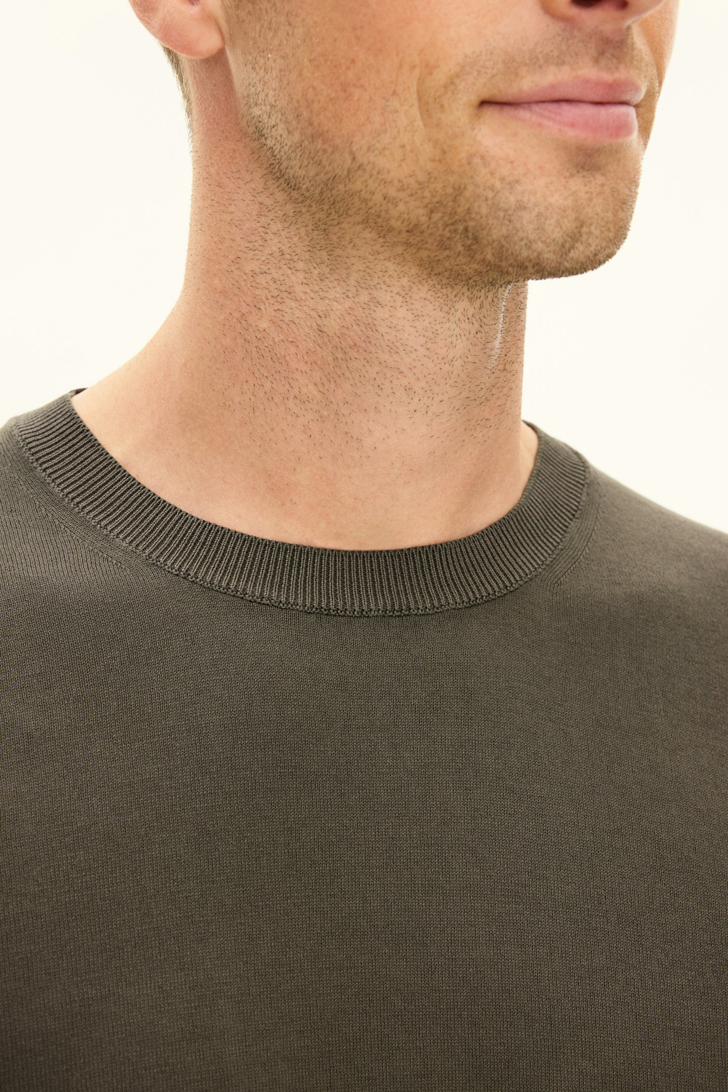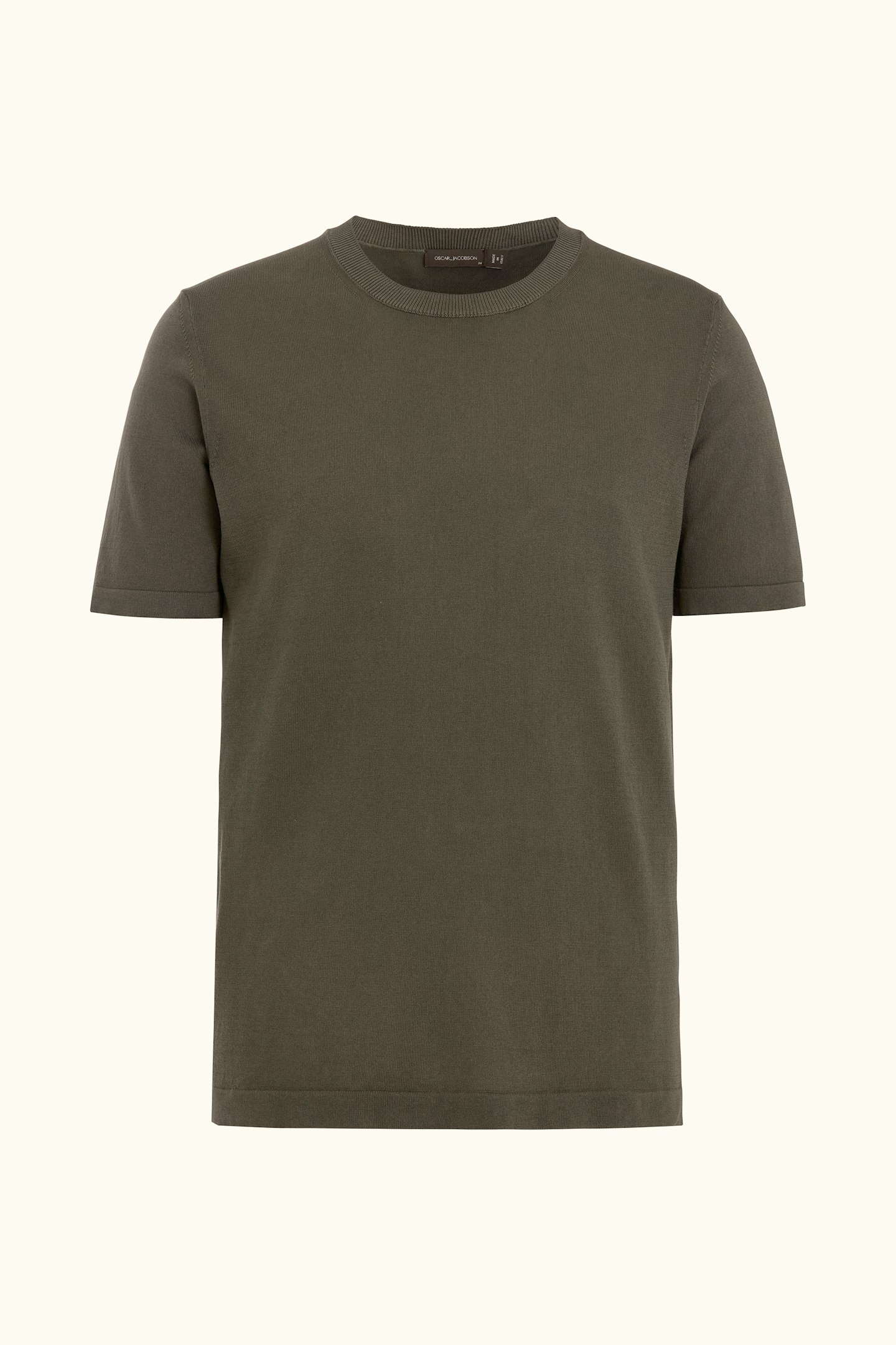 Vores Brian rundhals T-shirt er en slim fit lavet af 100% bomuld. Den har en rundhals design og har et ensfarvet strikket mønster.