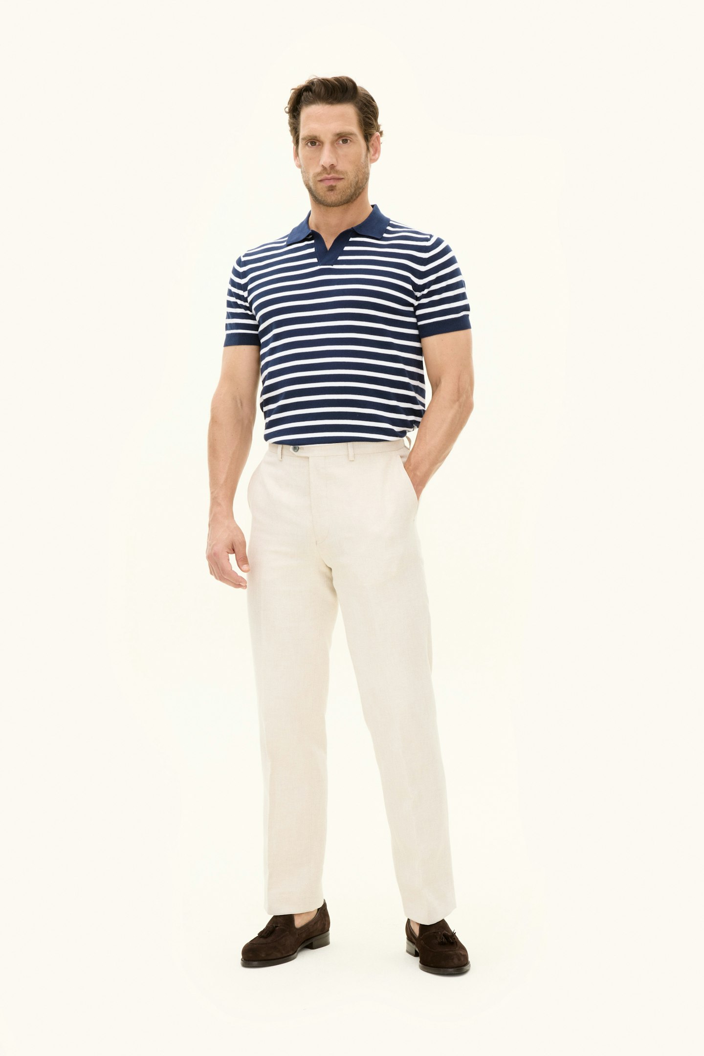 Denne poloshirt har et slim fit. Den er designet med en sofistikeret klassisk krave, stylet med et tidløst stribet mønster og fremstillet med strikket konstruktion. Lavet af 100 % bomuld. Perfekt til smart-casual brug året rundt.
