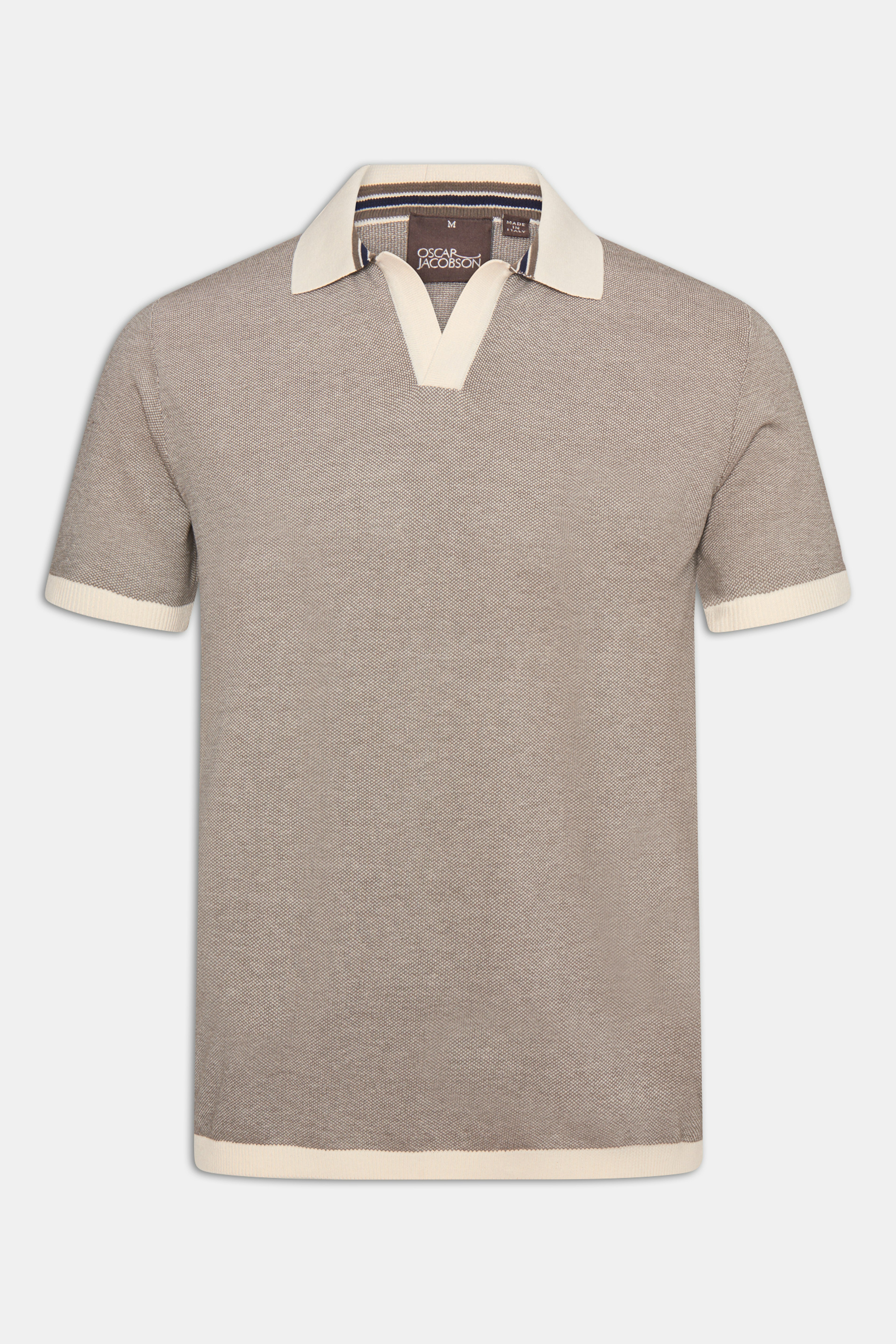 Short sleeved polo shirt in slim fit with a buttonless collar and ribbing of hem and cuff. Made in a 100 % cotton fabric.