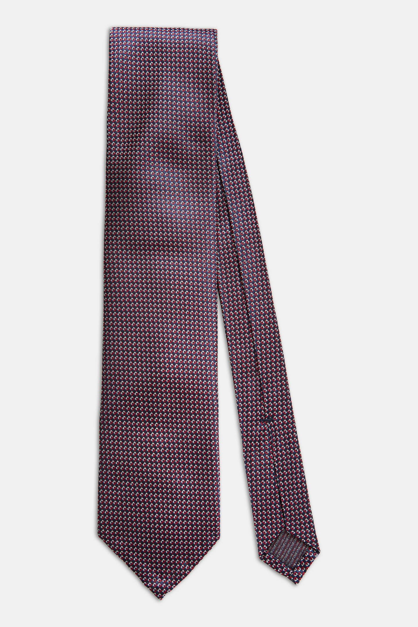 Patterned tie in 100% silk, made in accordance with the tradition seven fold and produced in collaboration with Gentlemanualen.