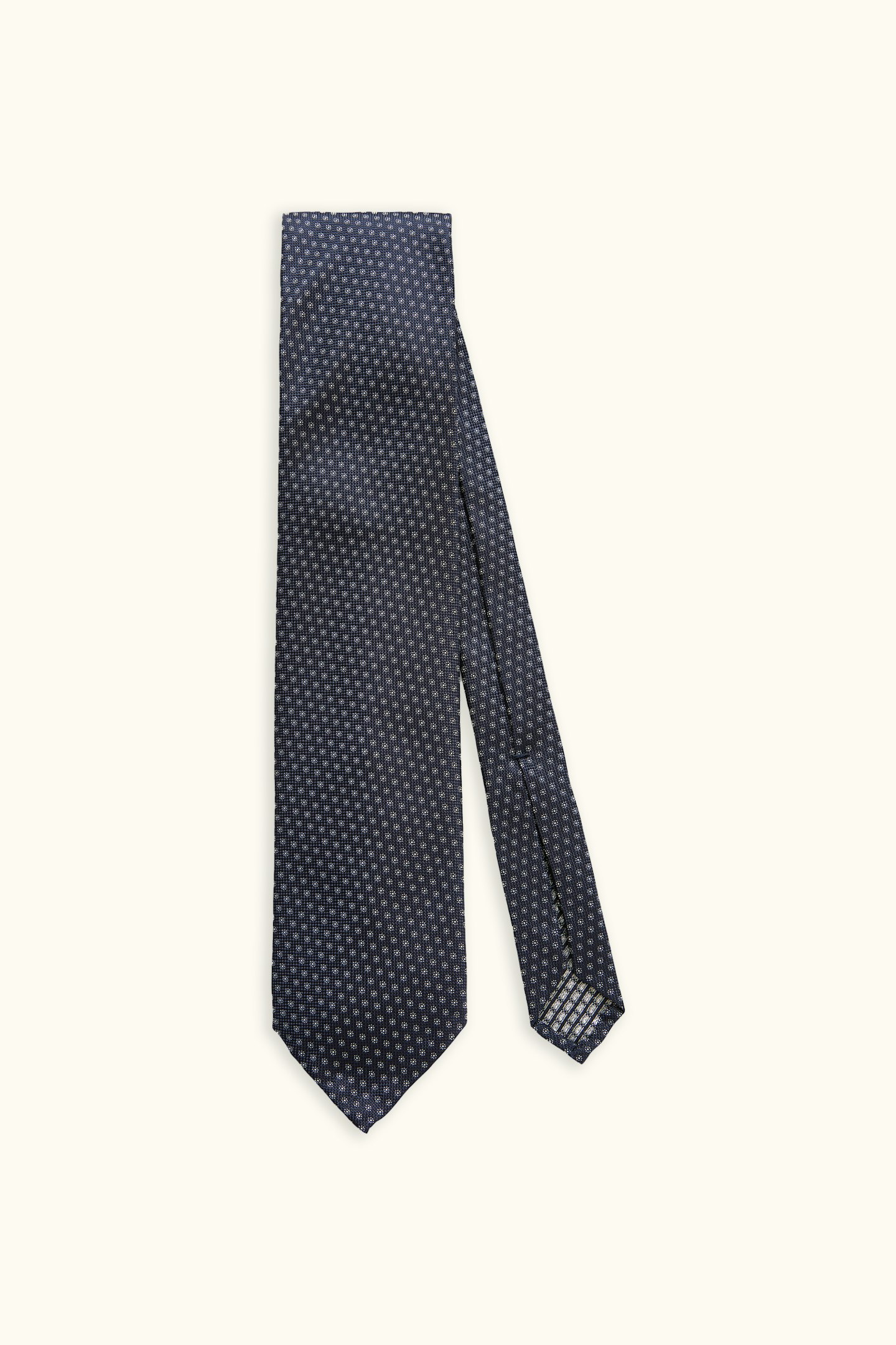 Patterned tie in 100% silk, made in accordance with the tradition seven fold and produced in collaboration with Gentlemanualen.