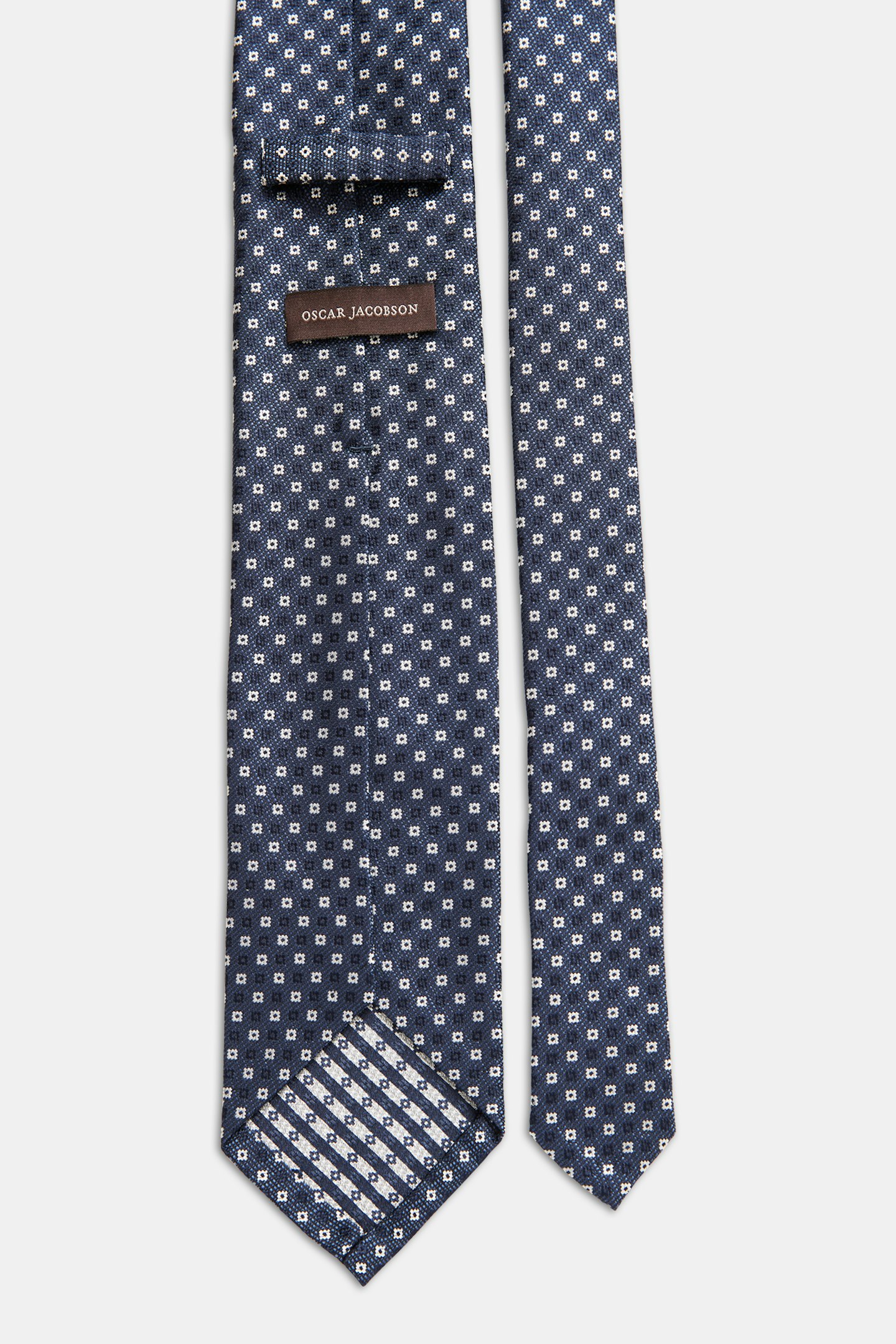 Patterned tie in 100% silk, made in accordance with the tradition seven fold and produced in collaboration with Gentlemanualen.