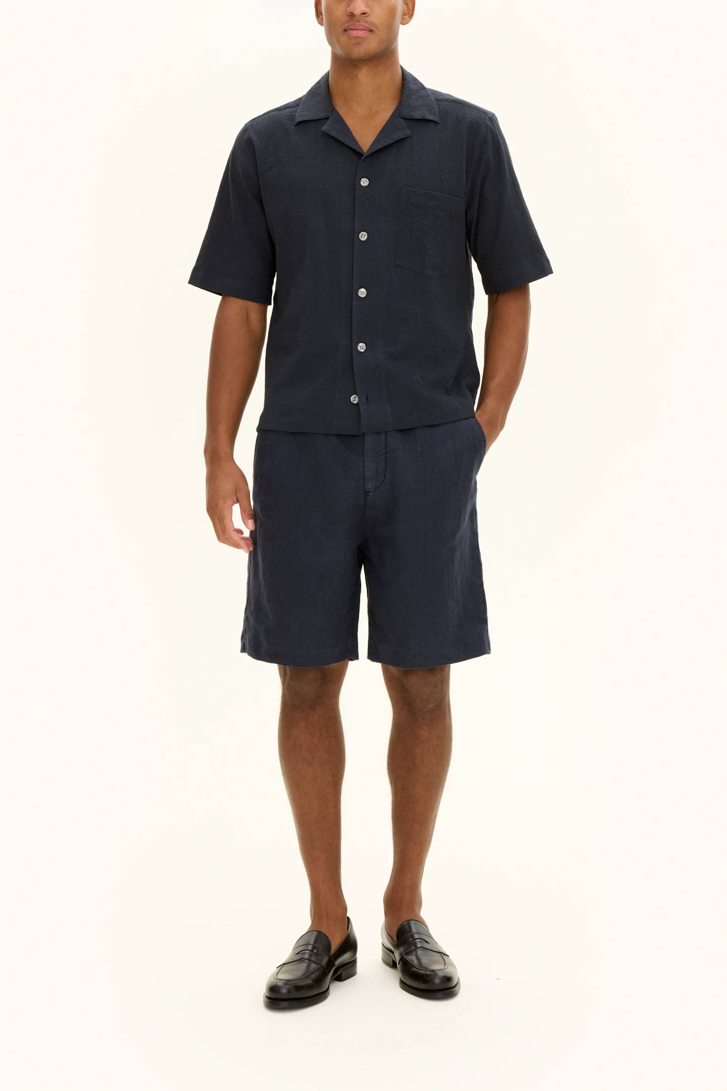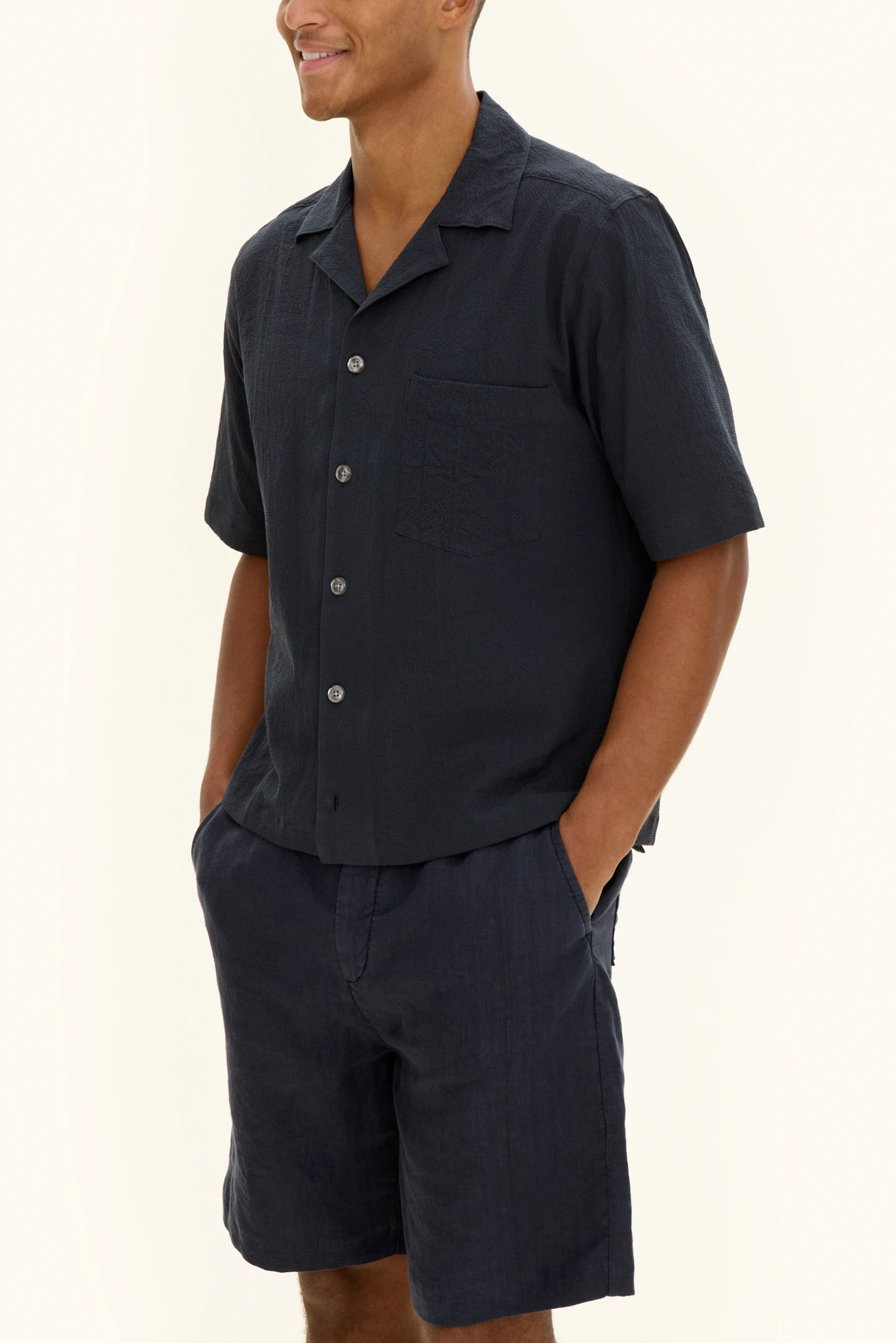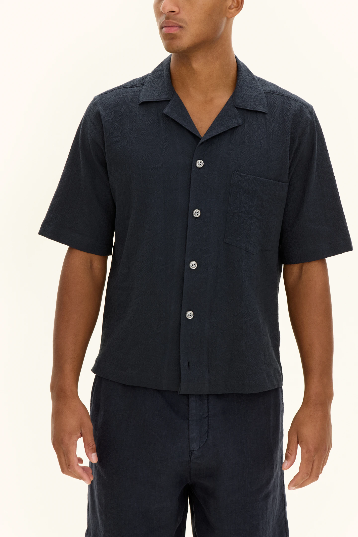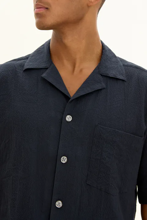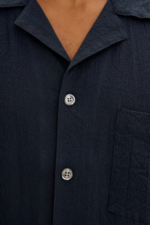 Regular Fit Bowling Collar Seersucker Shirt