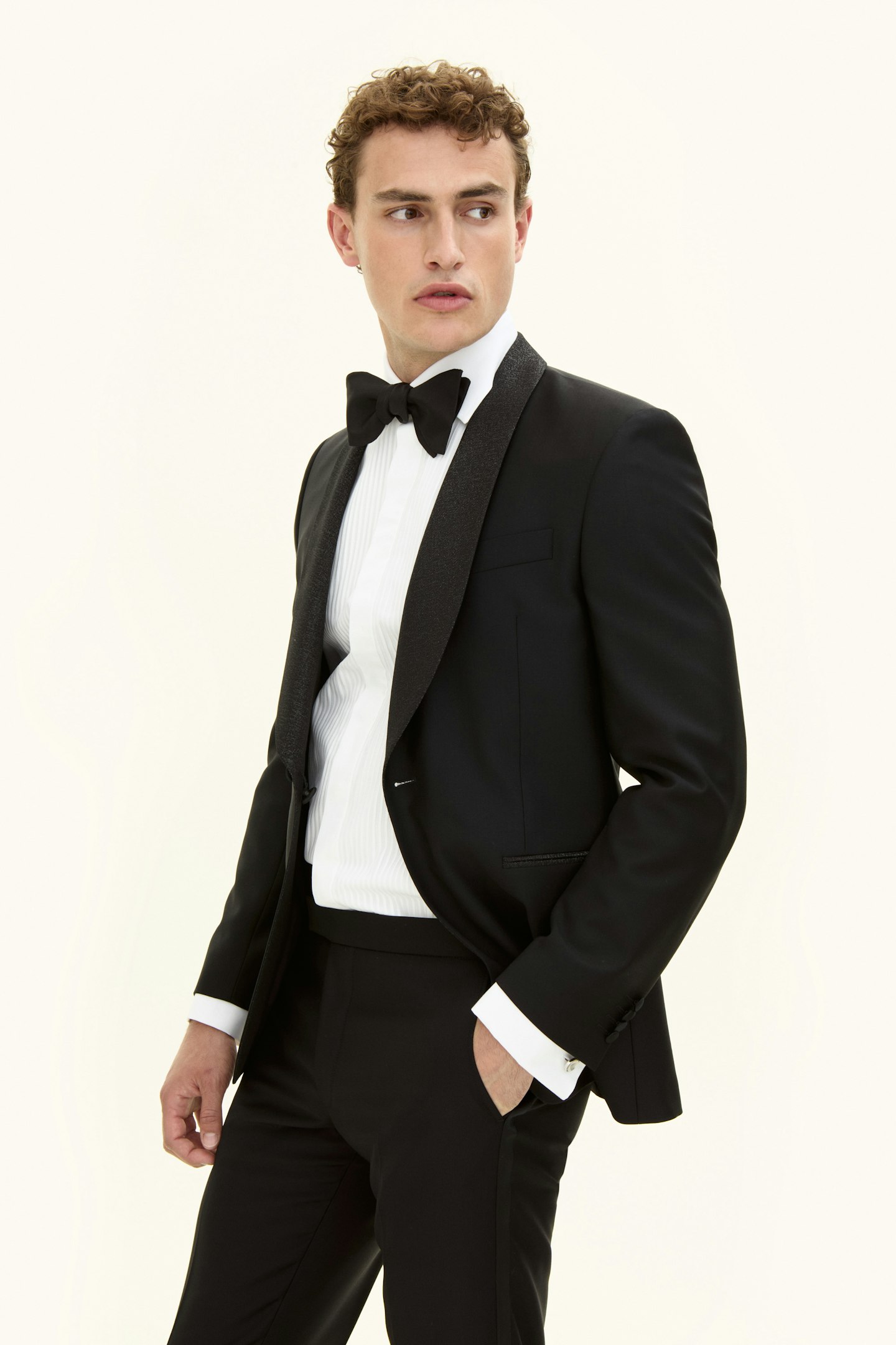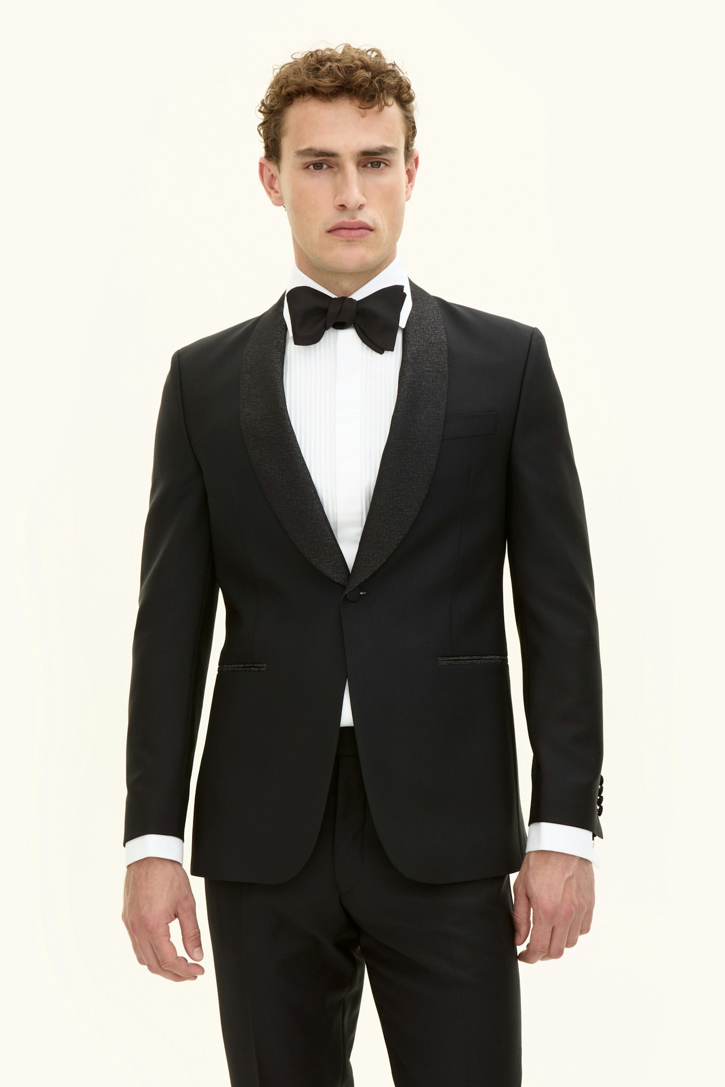Regular Fit Double Breasted Microstructure Tuxedo Blazer