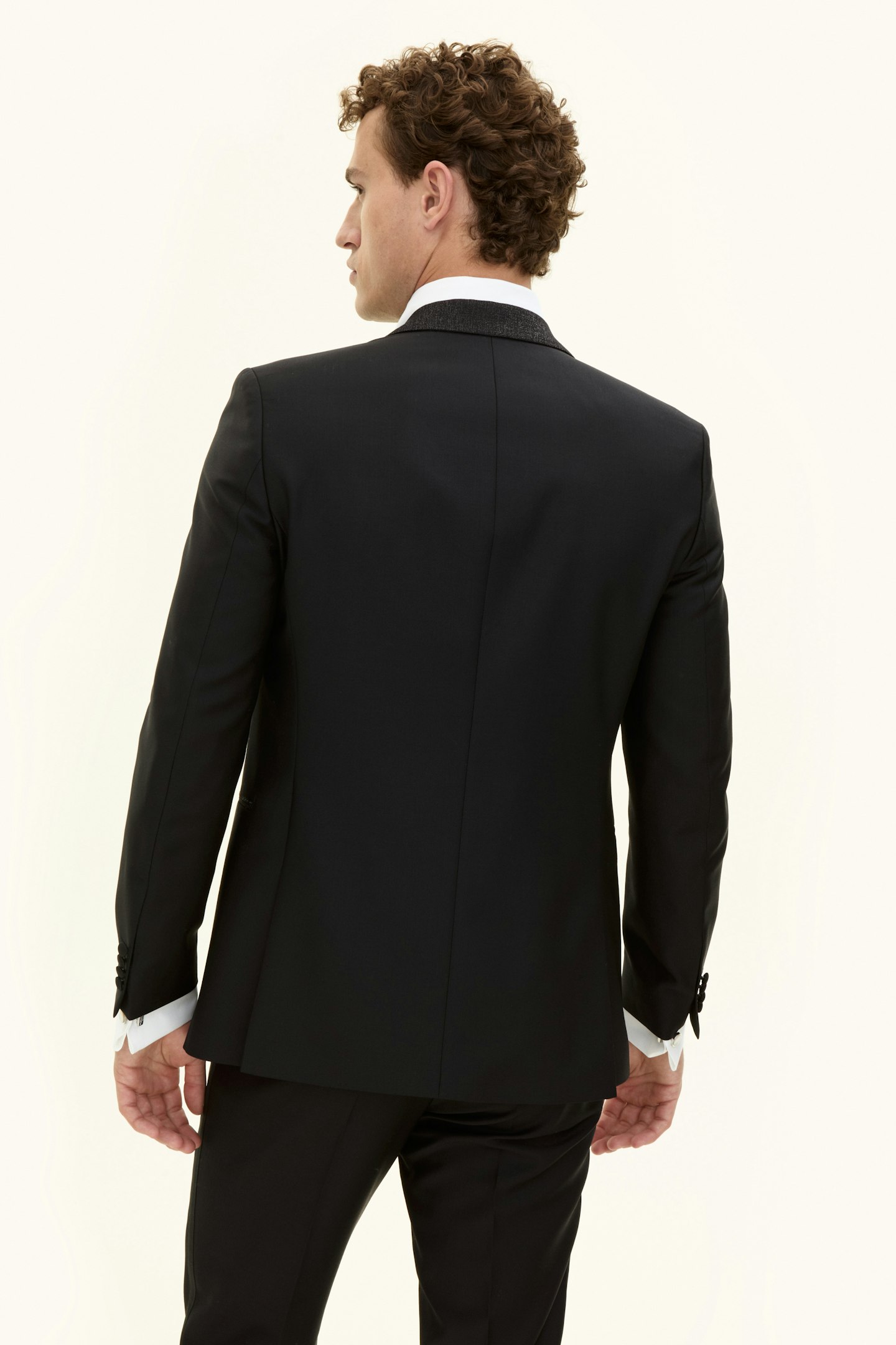 Regular Fit Double Breasted Microstructure Tuxedo Blazer