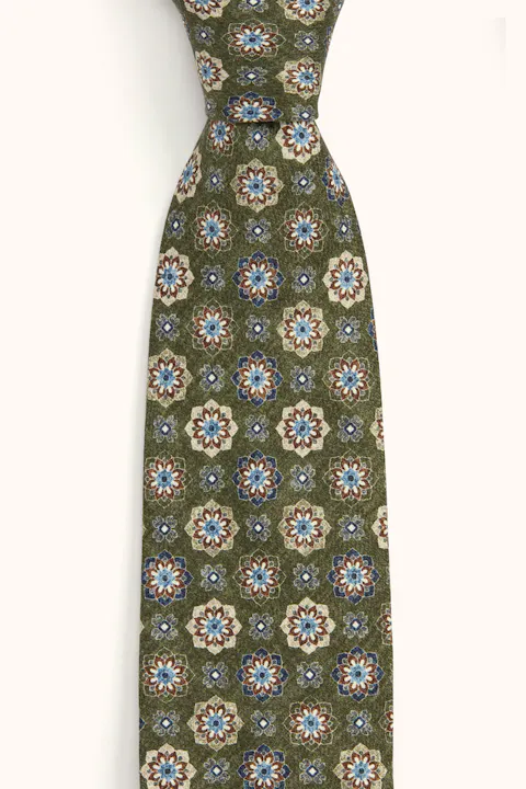 A woven tie in 100% silk, adorned with a floral pattern that adds elegance and personality. The natural sheen of the silk provides a refined finish that pairs well with both light and dark shirts.