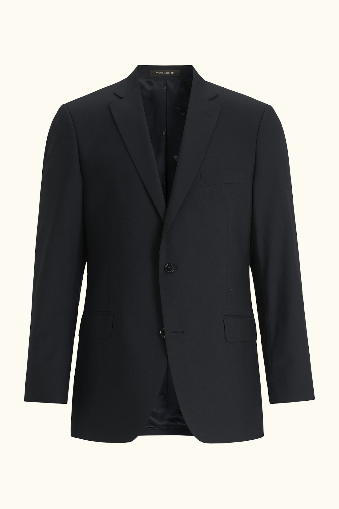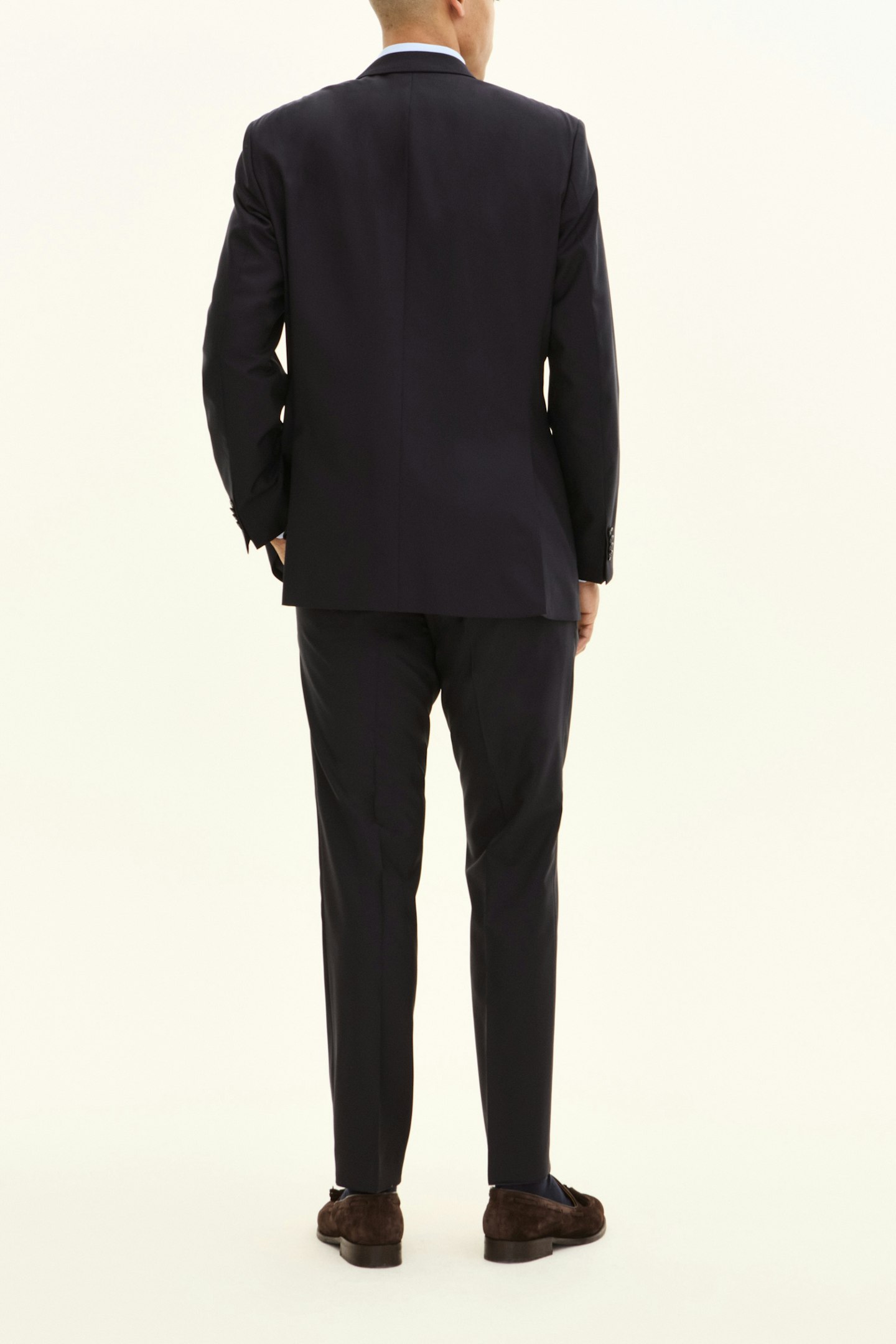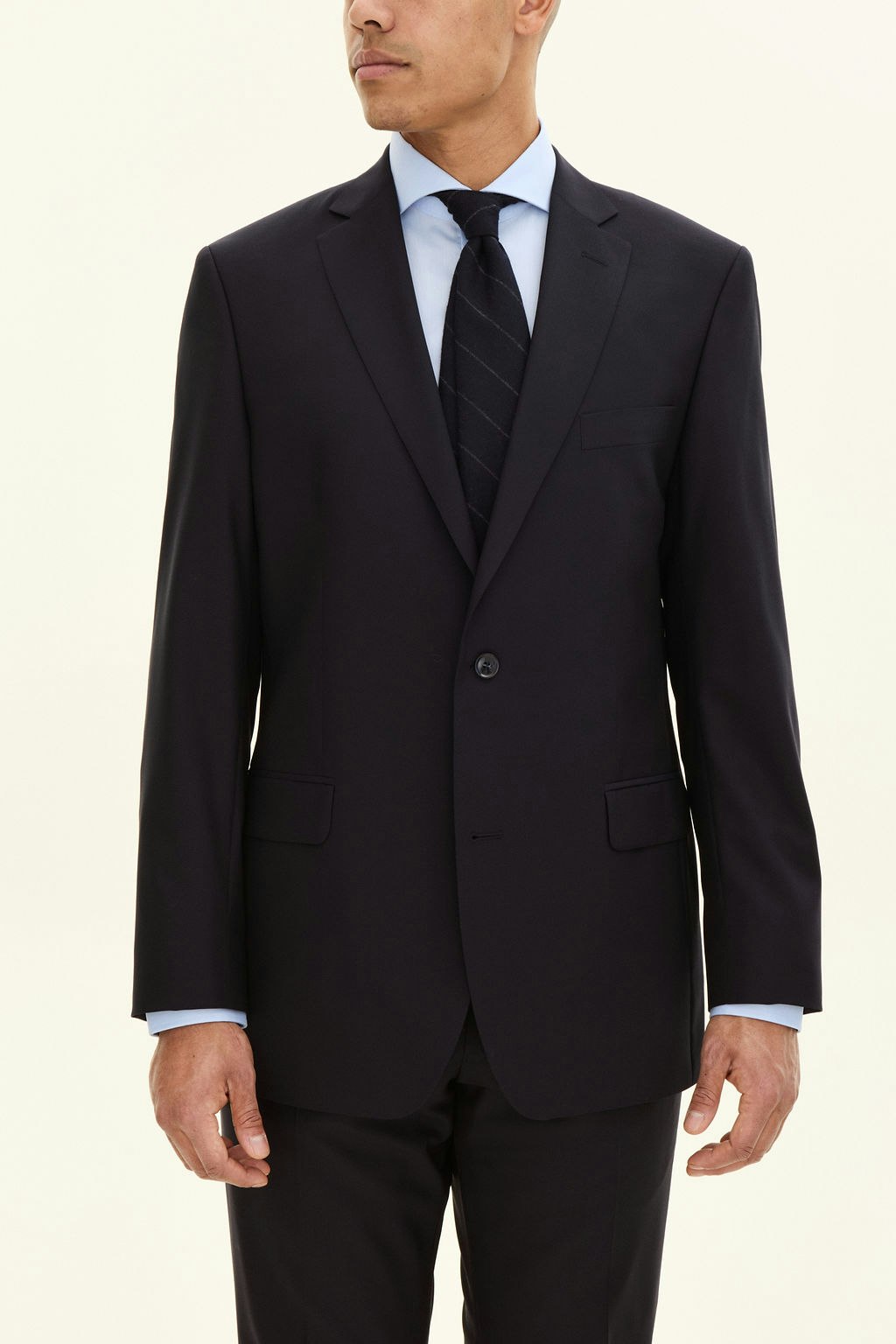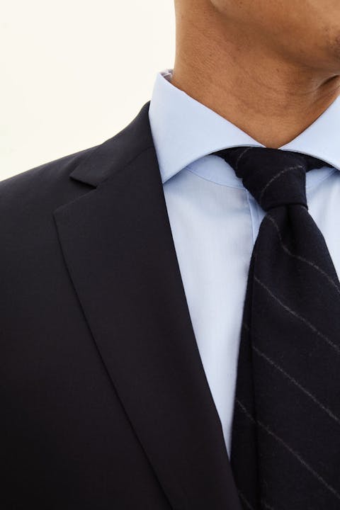 Formal suit in a spacious fit with full lining, padded shoulders and flap pockets. Made of Super 120's wool.
