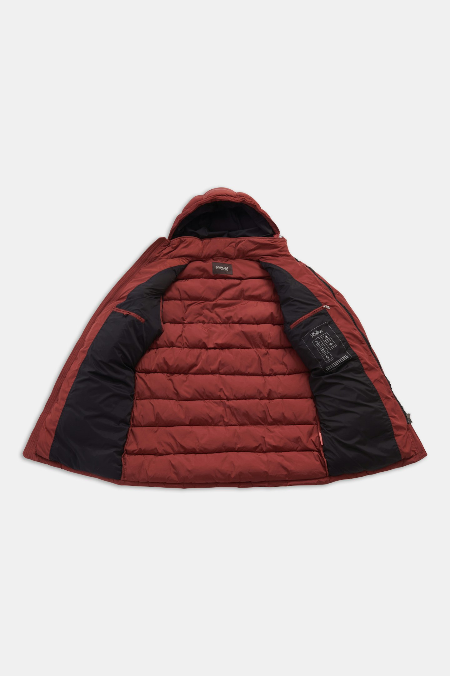 Longer winter parka that covers you blazer, made in windproof and water-repellent material. Equipped with double inner pockets, made of nylon and stuffed with DuPont™ Sorona padding that not only retains heat extremely well, but is also sustainably produced and completely plant-based.
