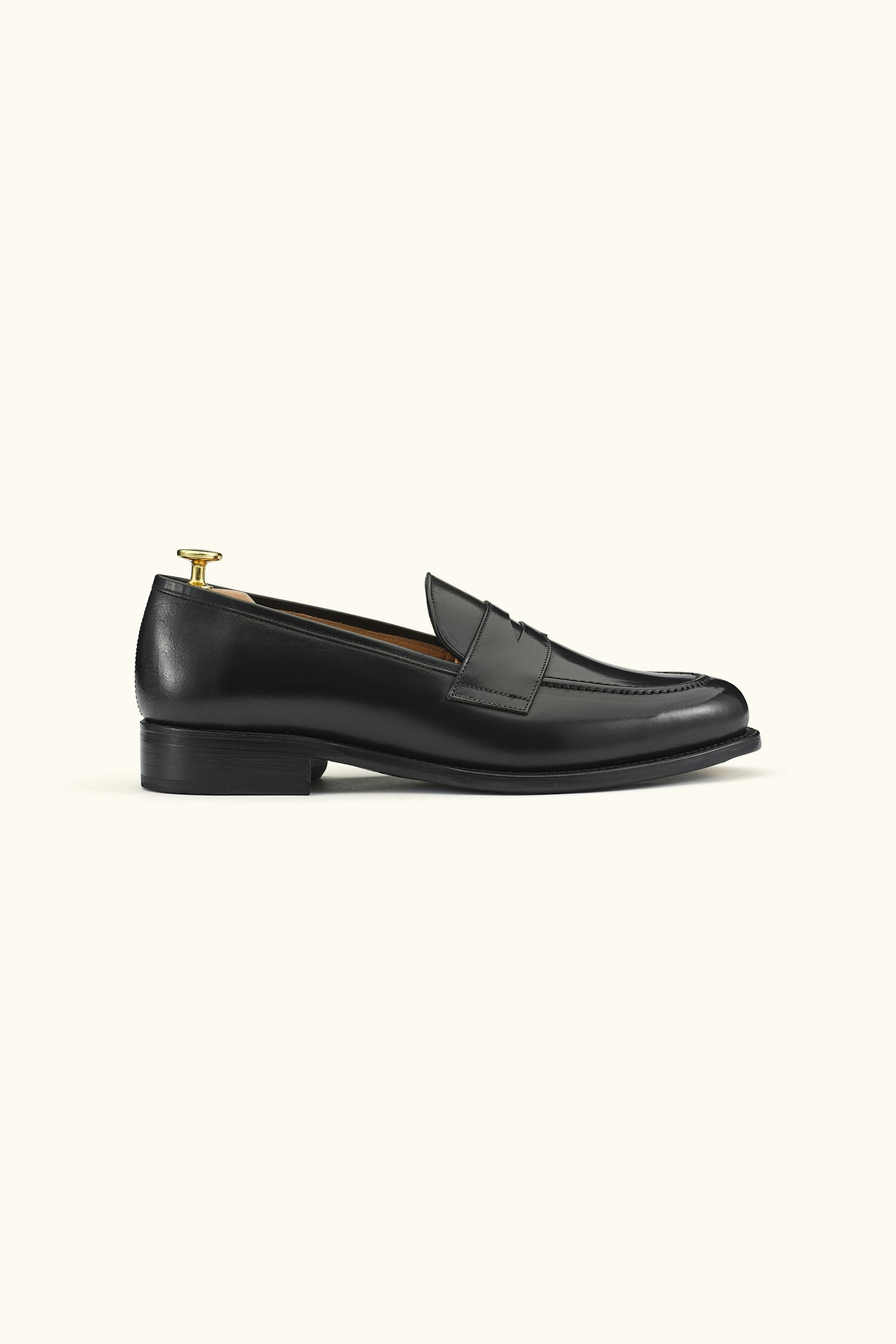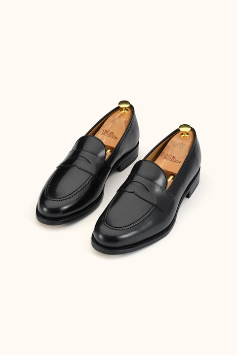 Goodyear welted penny loafers in luxurious Spanish cordovan leather with an unbeatable shine. Developed in collaboration with Gentlemanualen and handcrafted in Spain using genuine craftsmanship and carefully selected materials. Cordovan is one of the most exclusive leathers in the world – known for its virtually unmatched durability, high gloss, and long-lasting resilience. Thanks to the natural oils in the leather, it requires minimal maintenance while resisting weather conditions and frequent wear. Over time, the leather develops beautiful, soft creases and a deep, mirror-like shine that can easily be restored with a few strokes of a horsehair brush. The vegetable-tanned leather sole is equipped with recessed brass toe taps for extra durability, while the softly cushioned memory foam insole molds to the foot for superior comfort. The construction allows for future resoling – so you can wear and care for the shoes for many years to come.