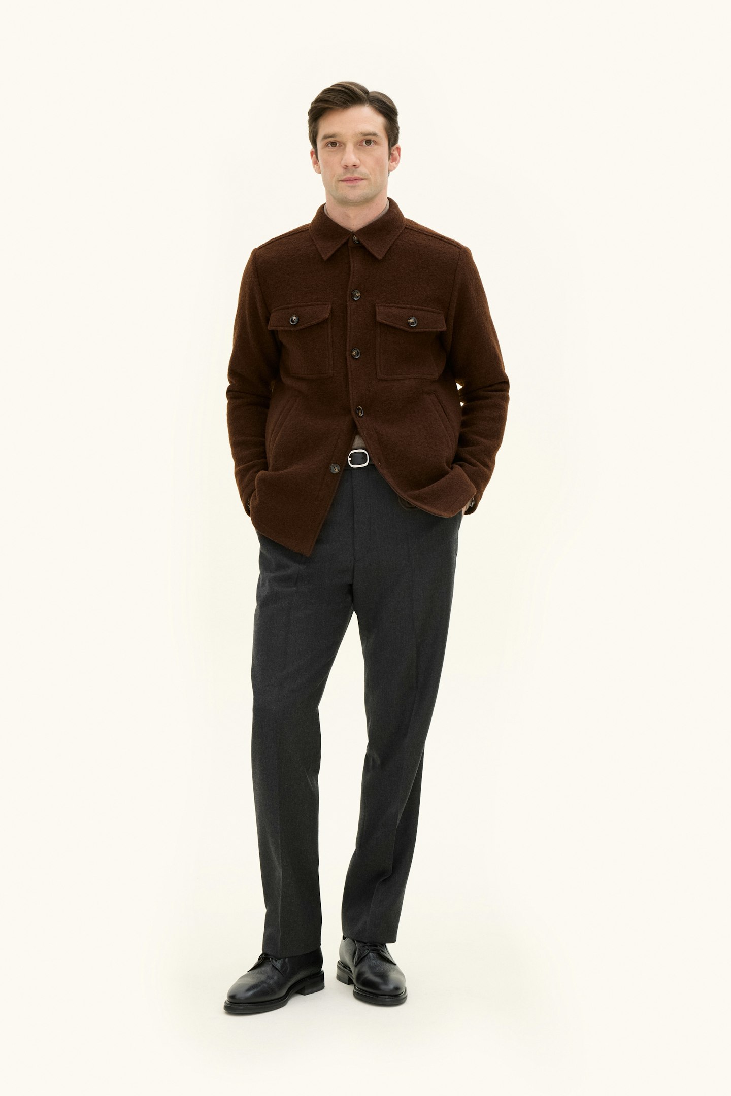 Versatile and thoughtfully constructed, this overshirt in soft 100% Wool combines refined tailoring with practical elegance. The tailored regular fit silhouette completes the piece with poise and purpose.