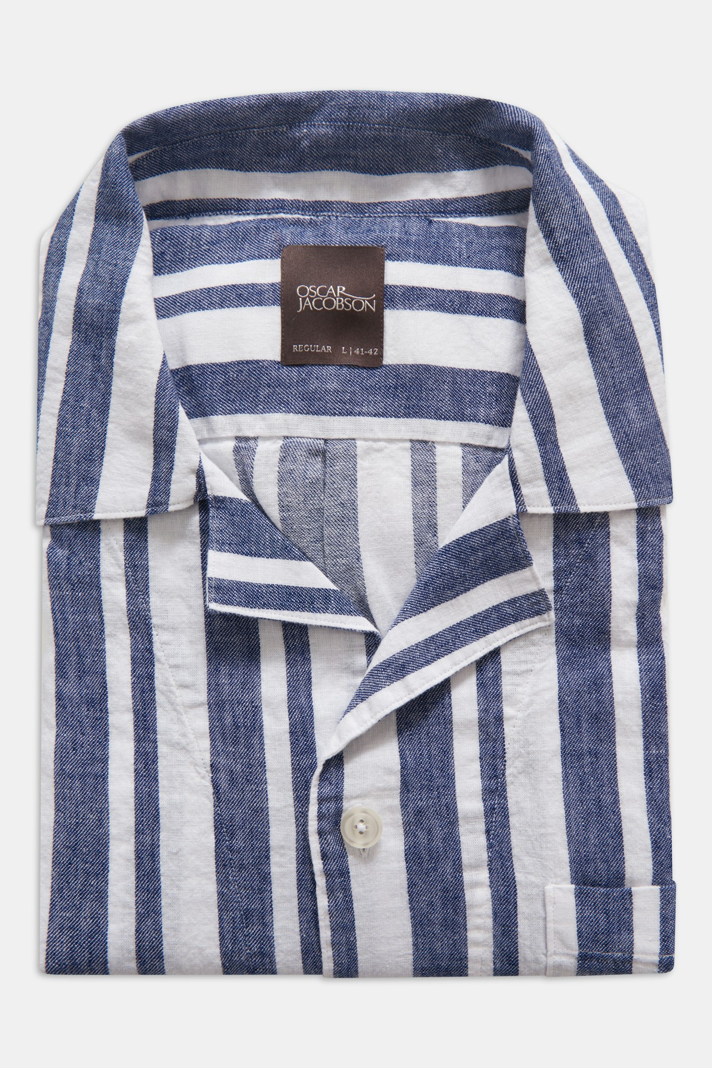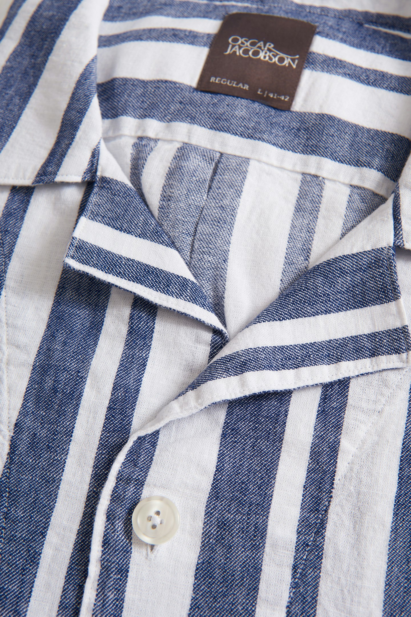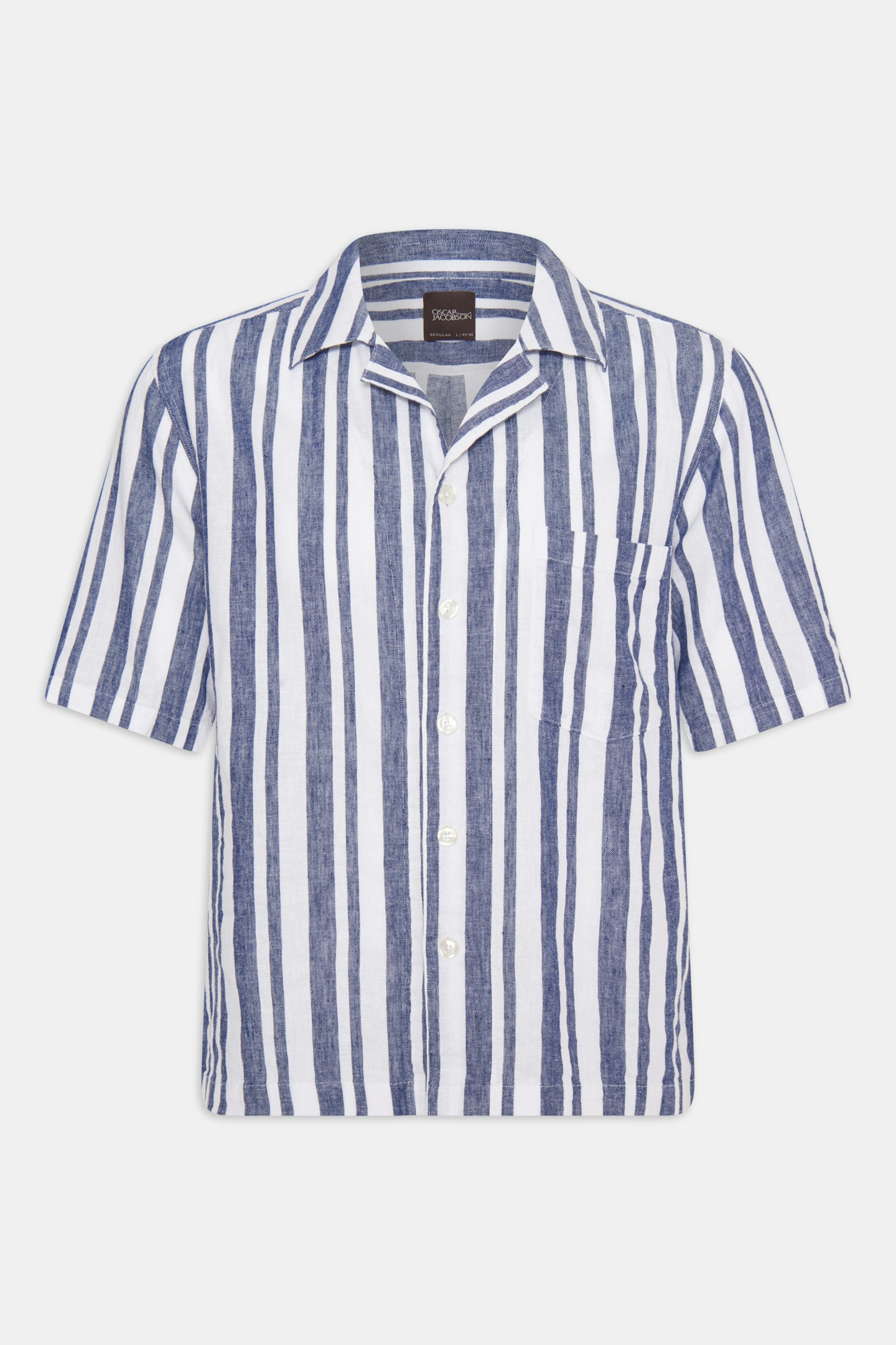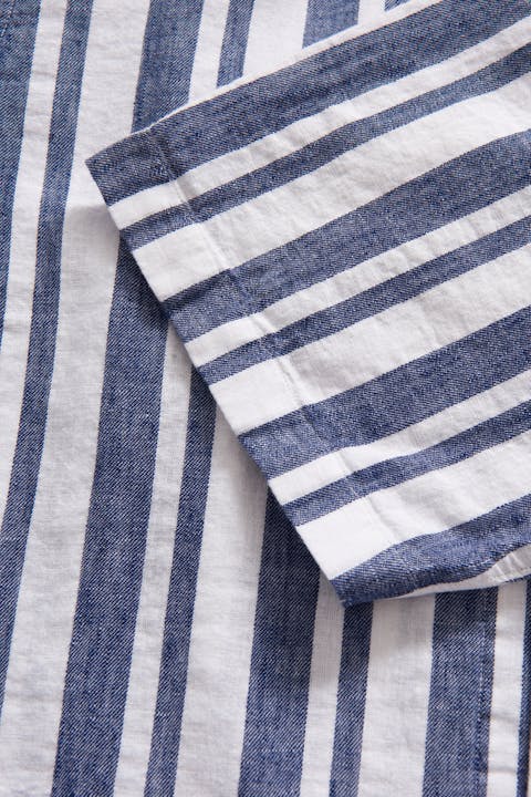 Short sleeved shirt in regular fit with a bowling collar. Made in a striped cotton and linen fabric.