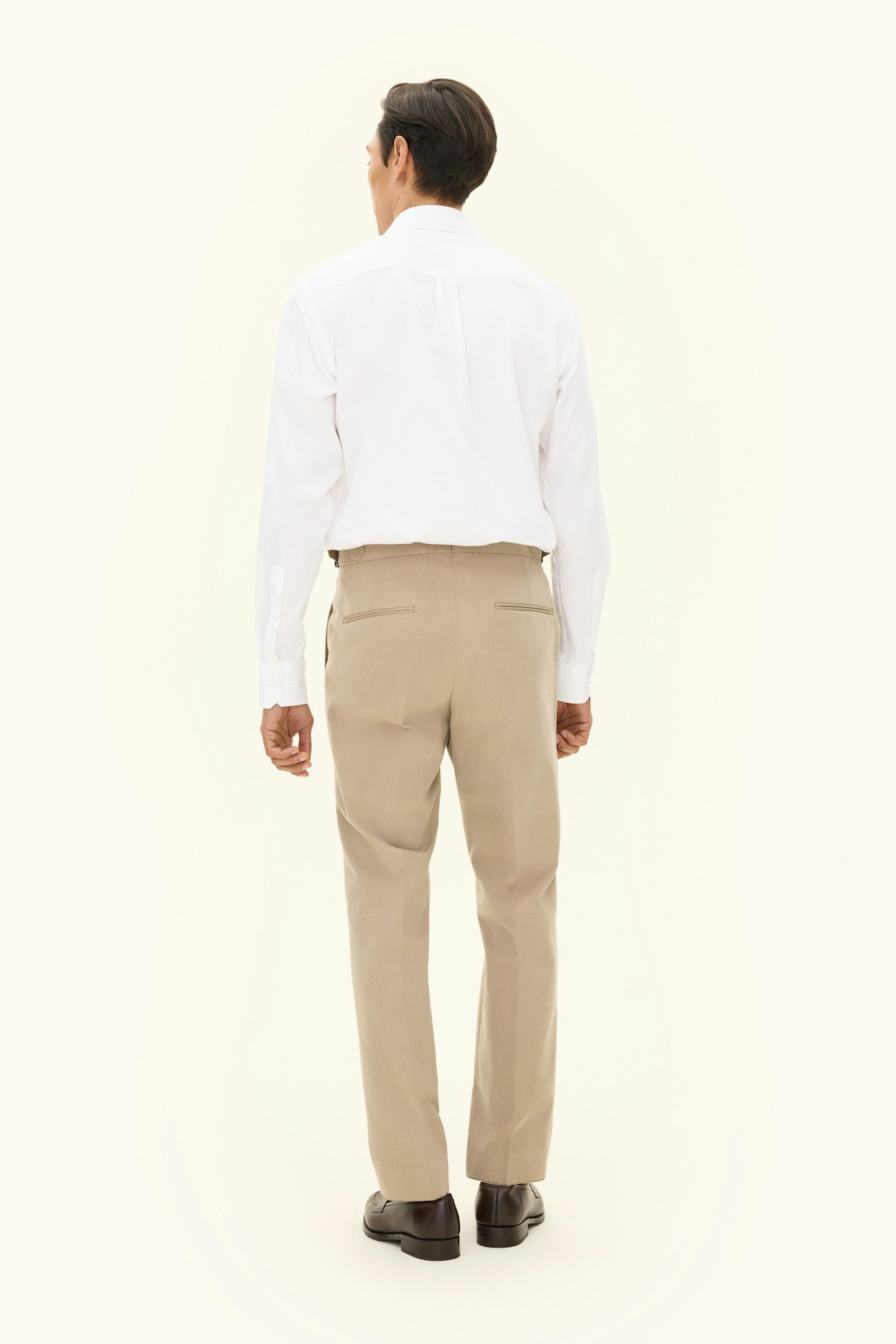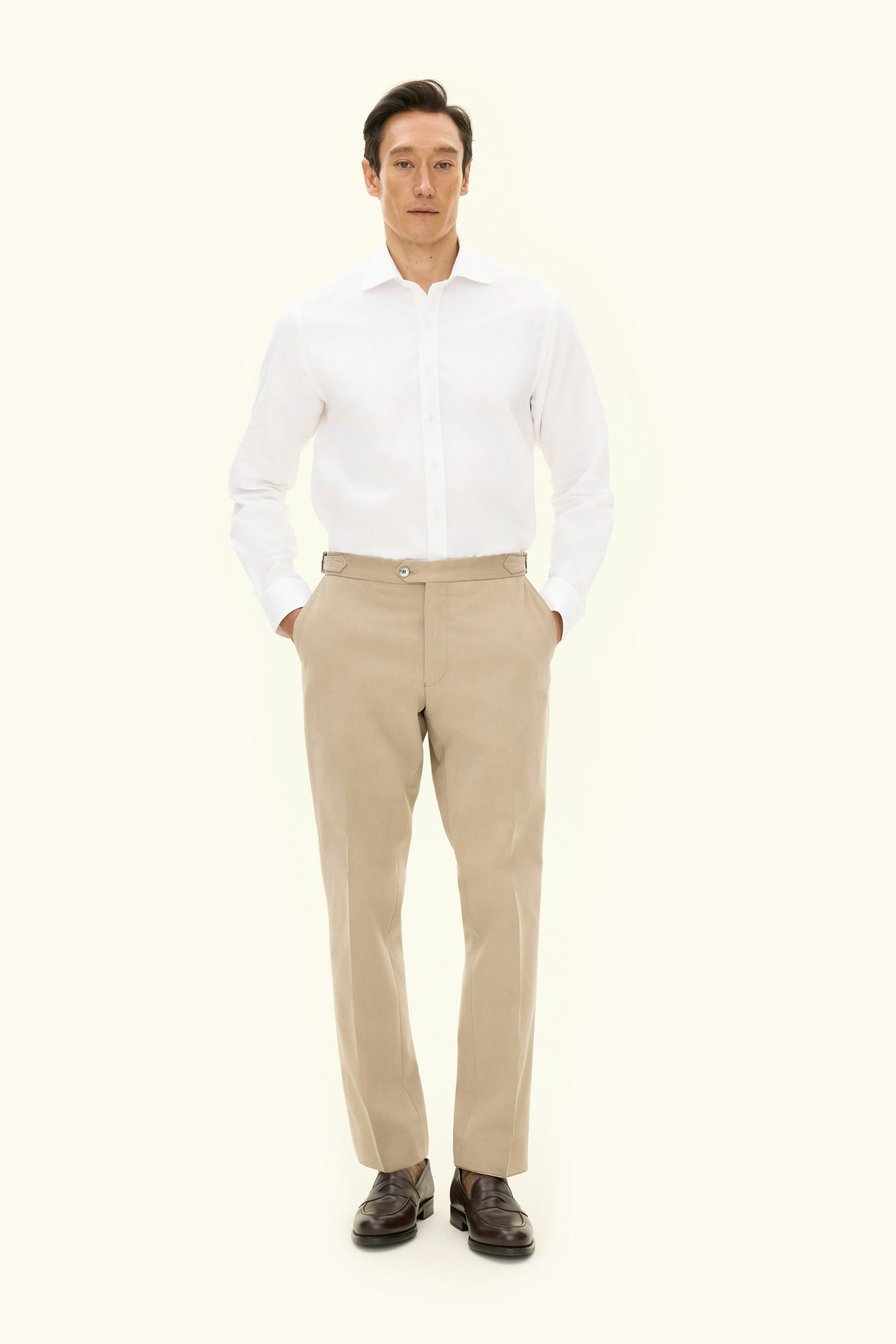 These trousers in 100% cotton are woven in twill with a brushed finish for a soft touch. With a regular fit and high waist, they are a versatile wardrobe addition – equally stylish with a blazer or a more casual top.