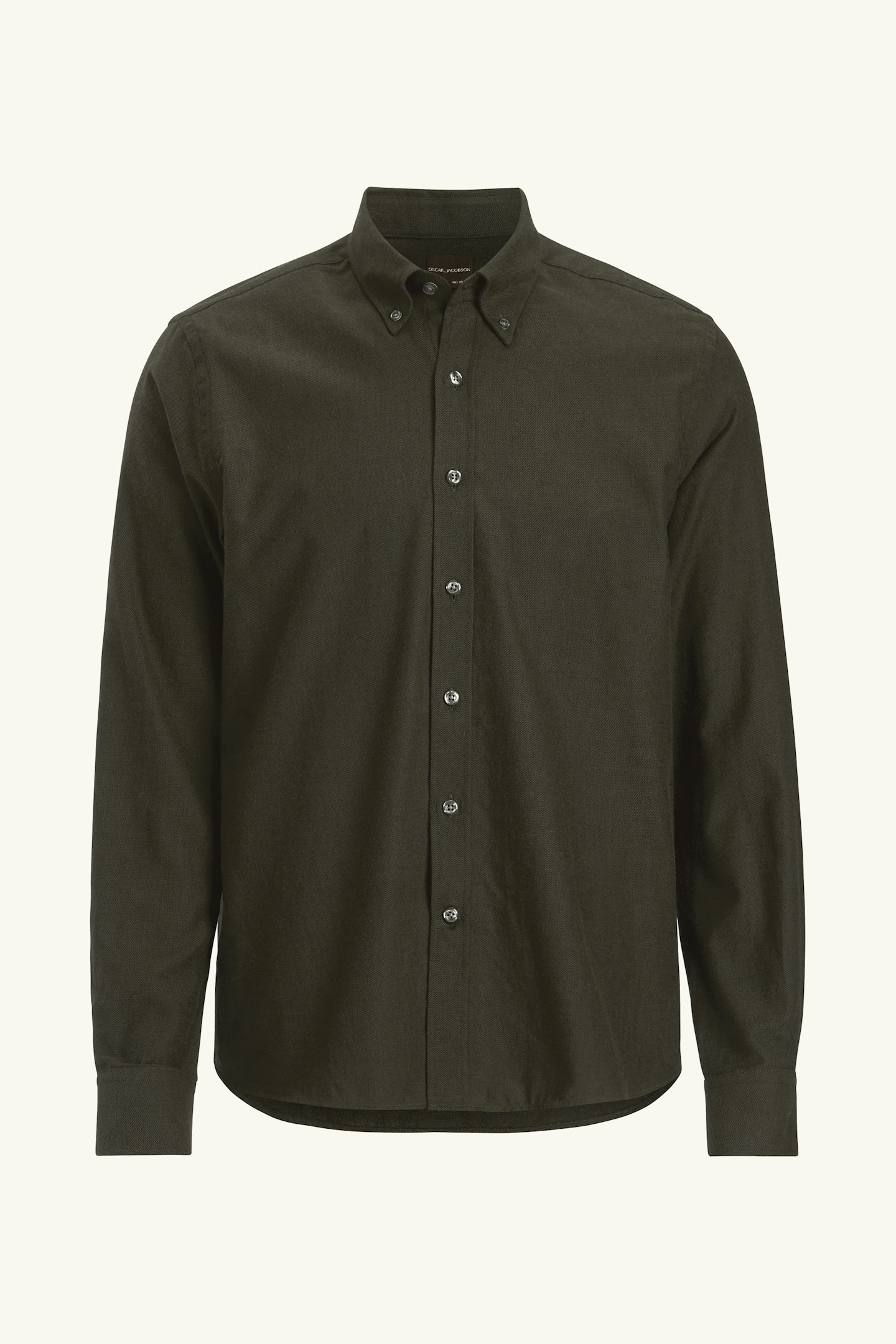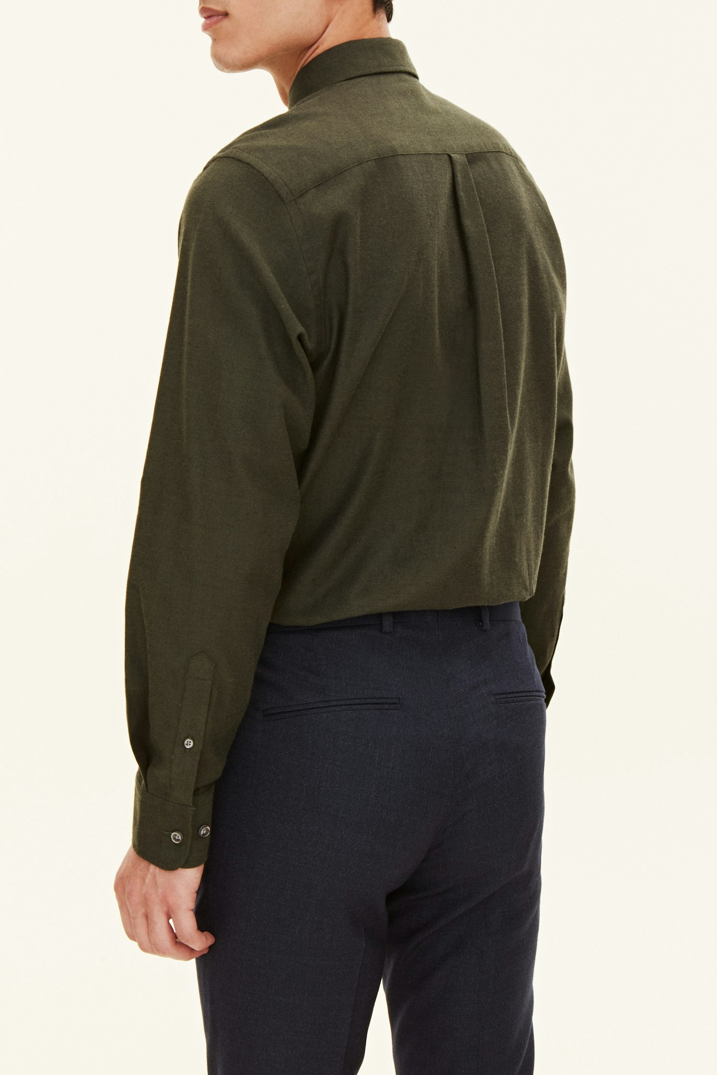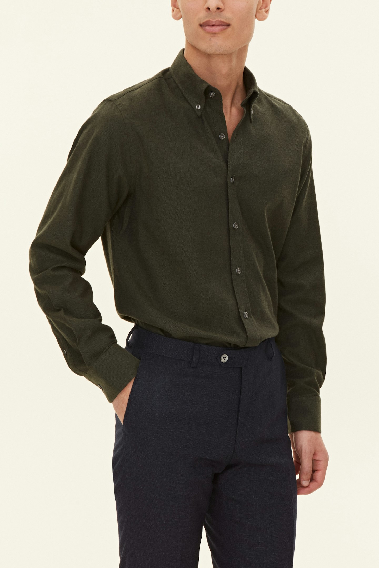 This piece is carefully crafted to ensure comfort and durability. Made from 100% cotton, this shirt offers a regular fit. It is designed with a sophisticated button down collar, finished with single cuffs. Styled with a timeless plain pattern, crafted using woven construction, featuring a refined flannel texture. A stylish staple that ensures effortless sophistication.