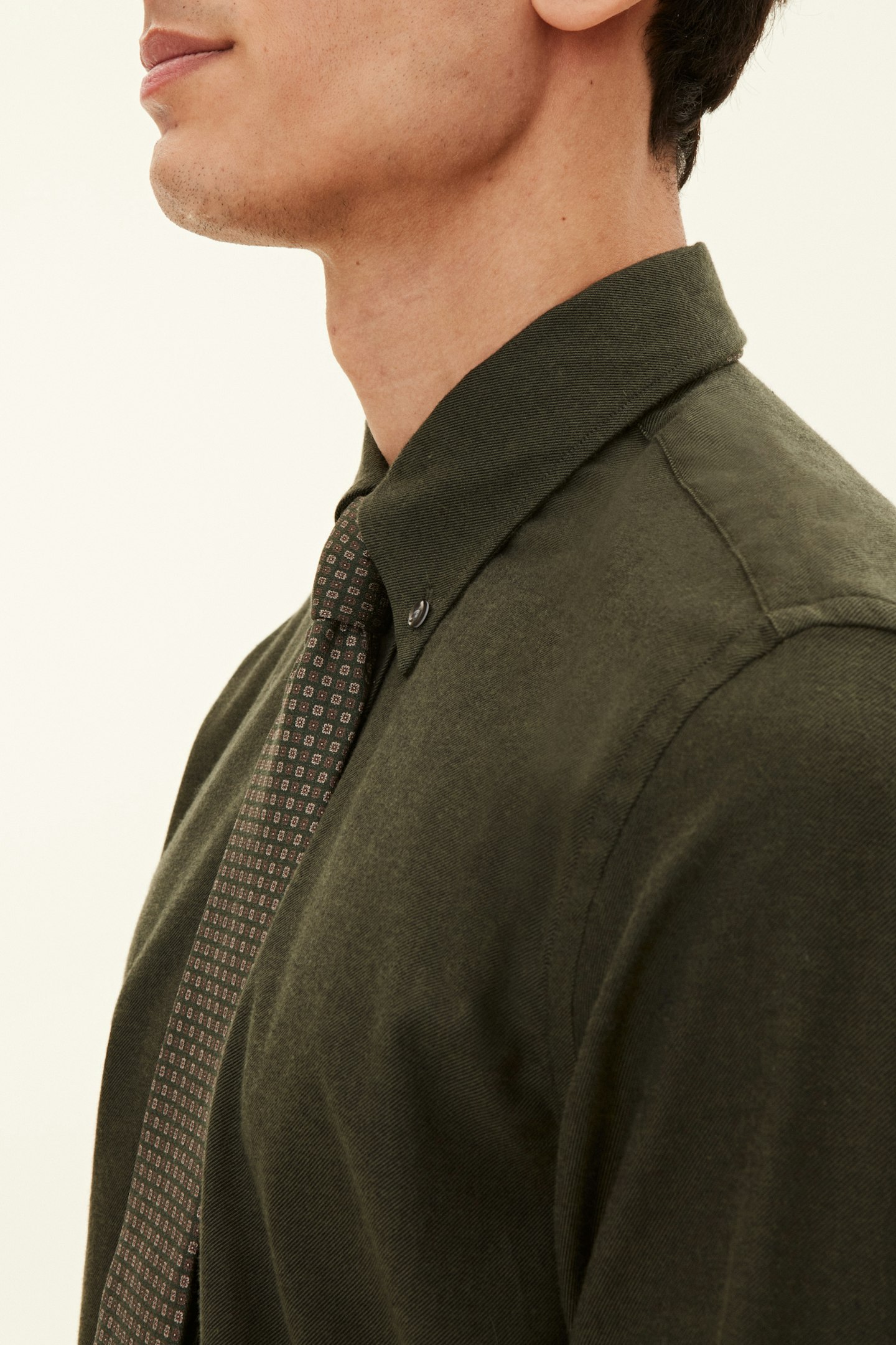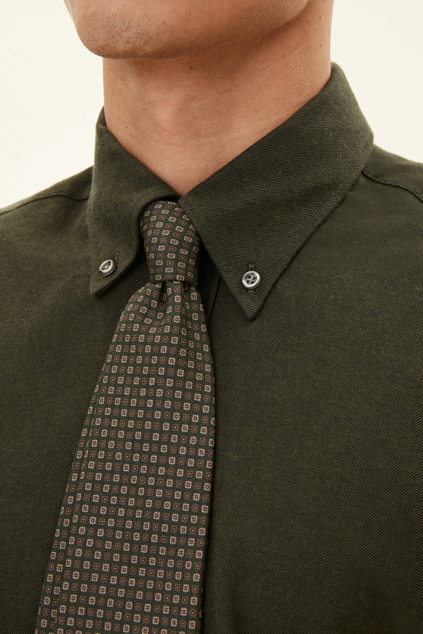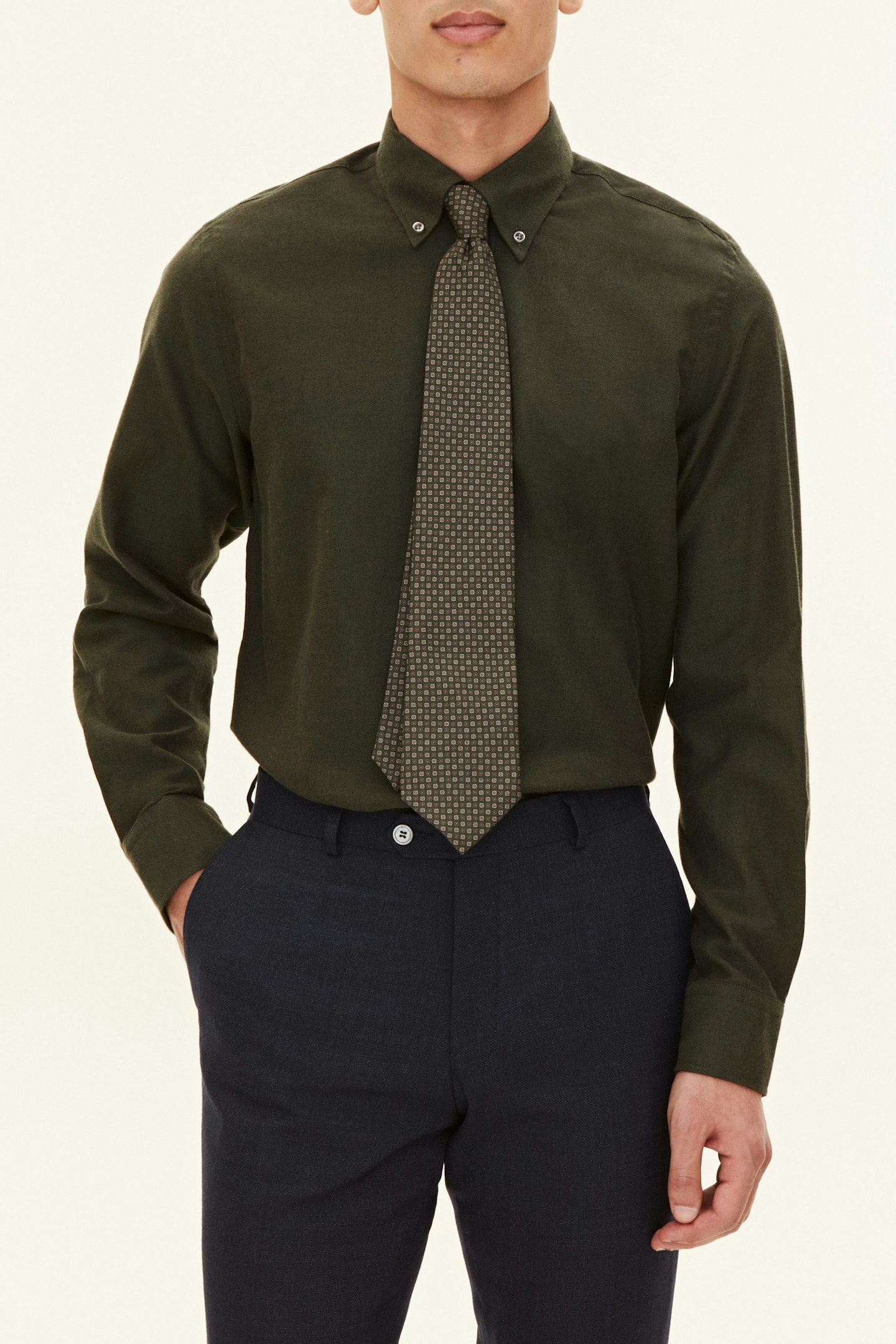 This piece is carefully crafted to ensure comfort and durability. Made from 100% cotton, this shirt offers a regular fit. It is designed with a sophisticated button down collar, finished with single cuffs. Styled with a timeless plain pattern, crafted using woven construction, featuring a refined flannel texture. A stylish staple that ensures effortless sophistication.