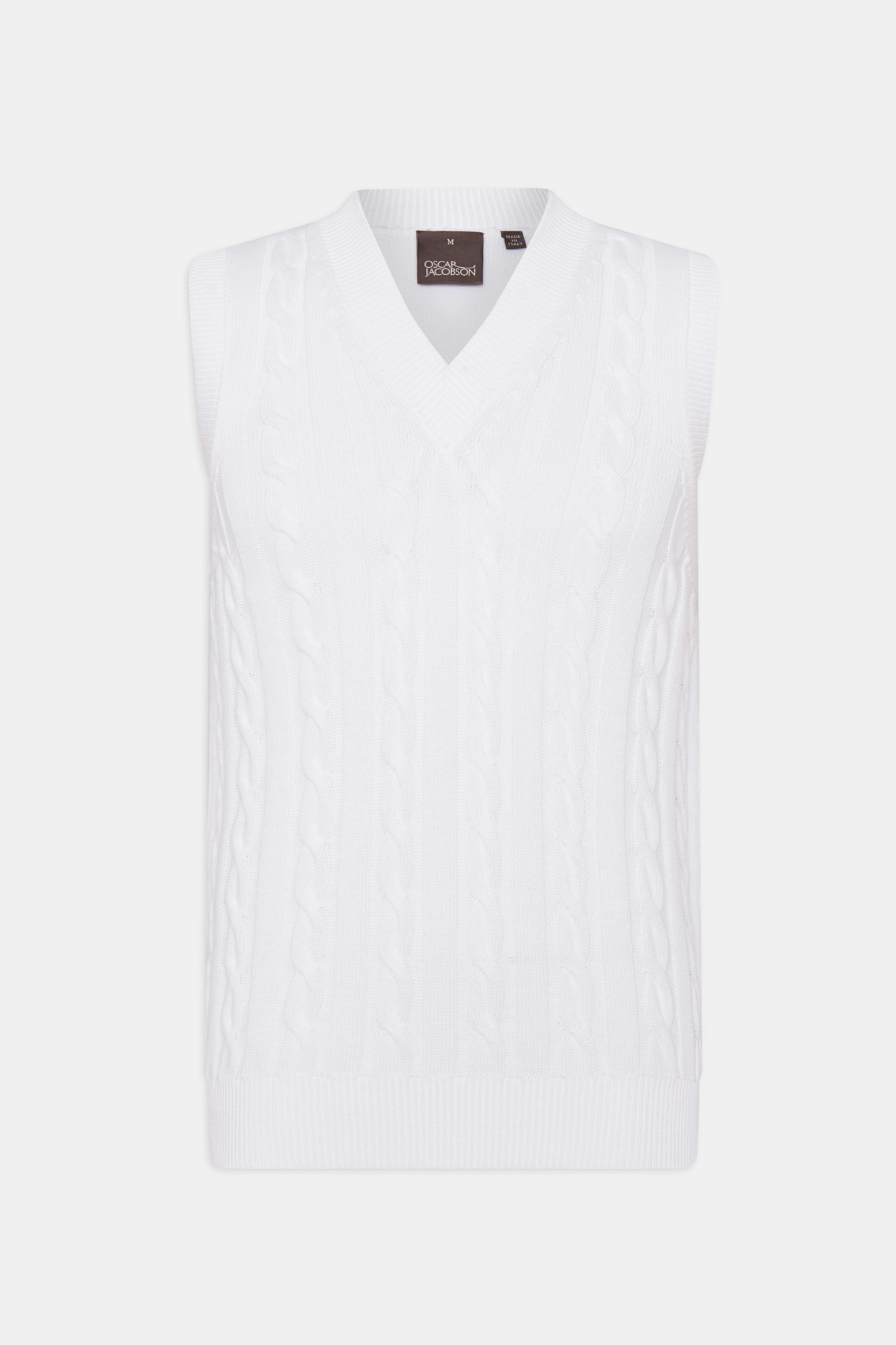 Cable knitted slipover in slim fit with a v-neck. Made in airy cotton.